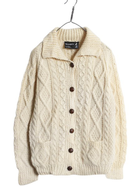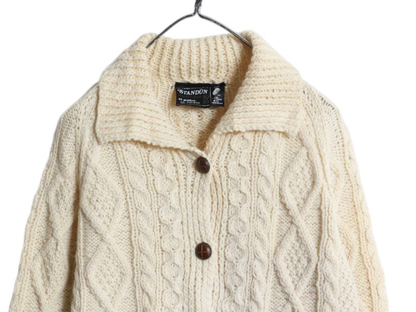 | 商品名 | 80s 手編み アイルランド製 STANDUN フィッシャーマン ウール ハンド ニット カーディガン レディース S 程/ ヴィンテージ セーター アラン |