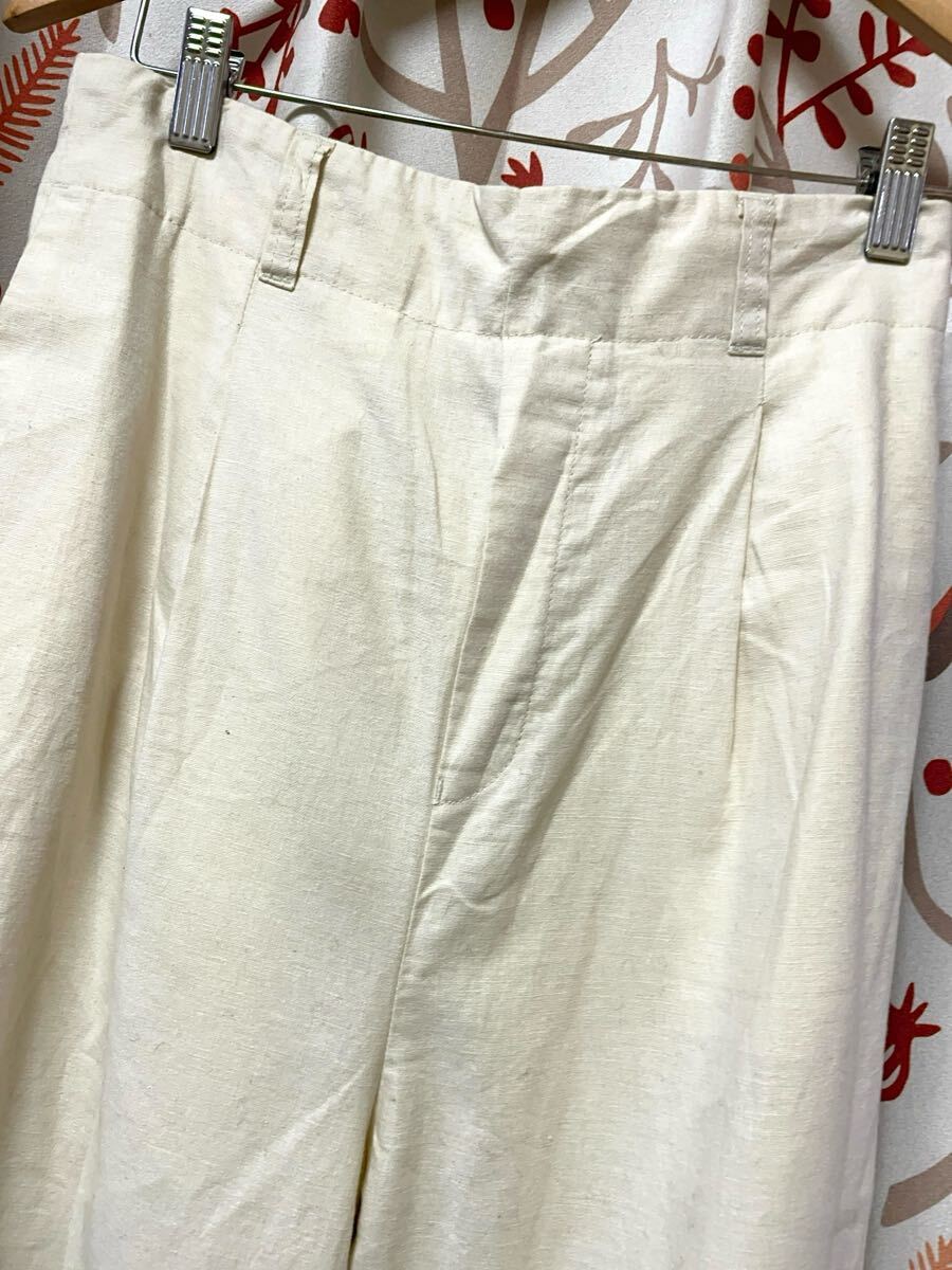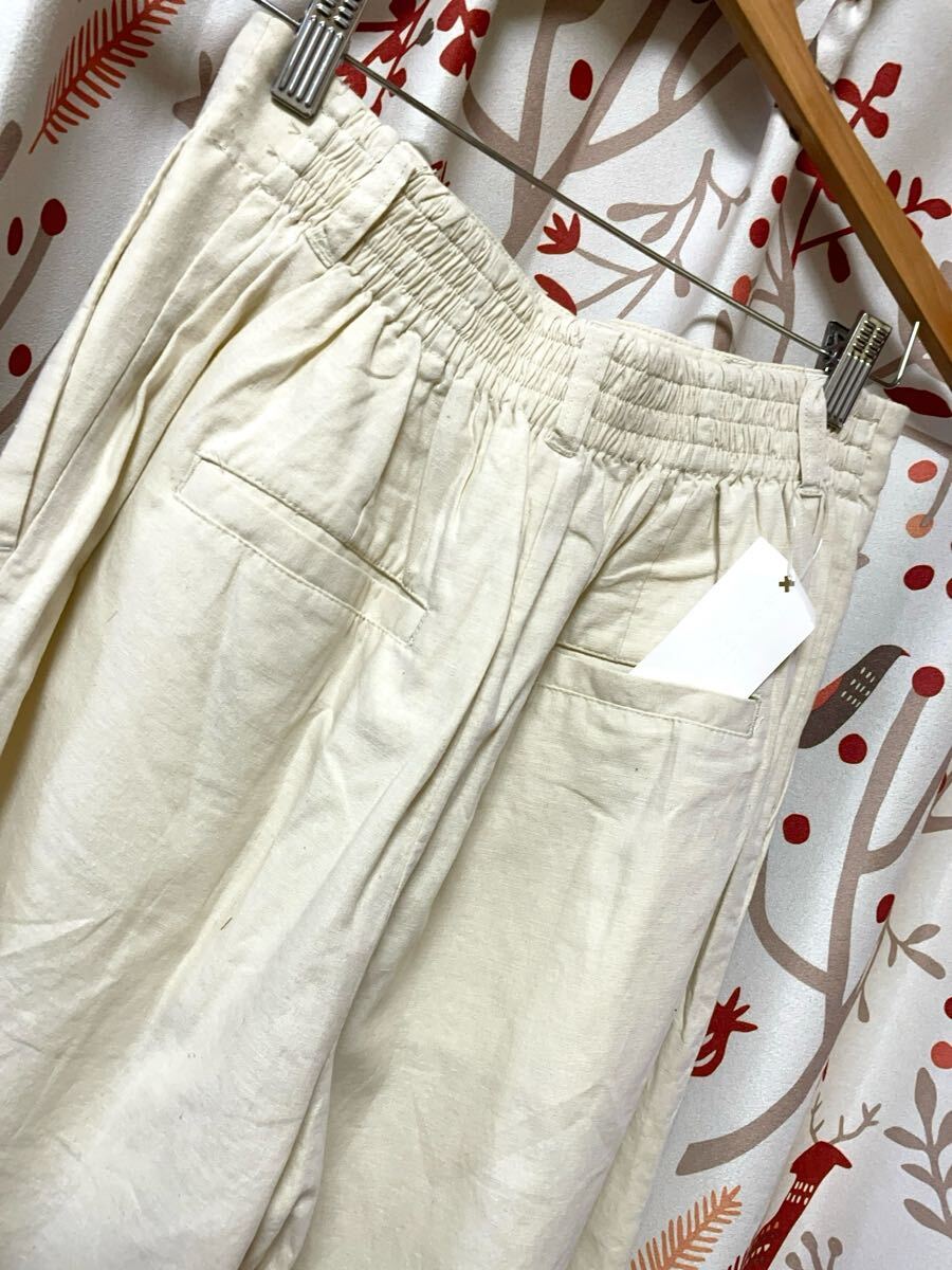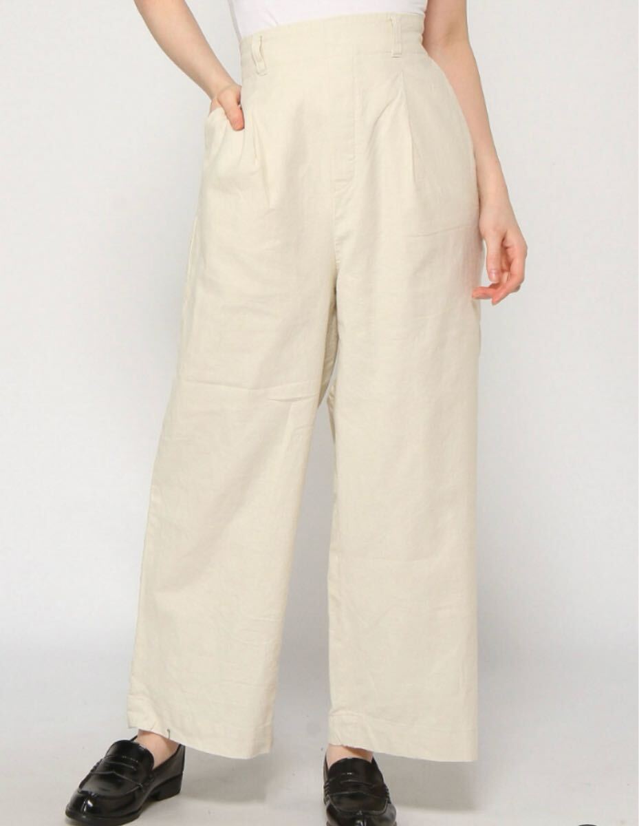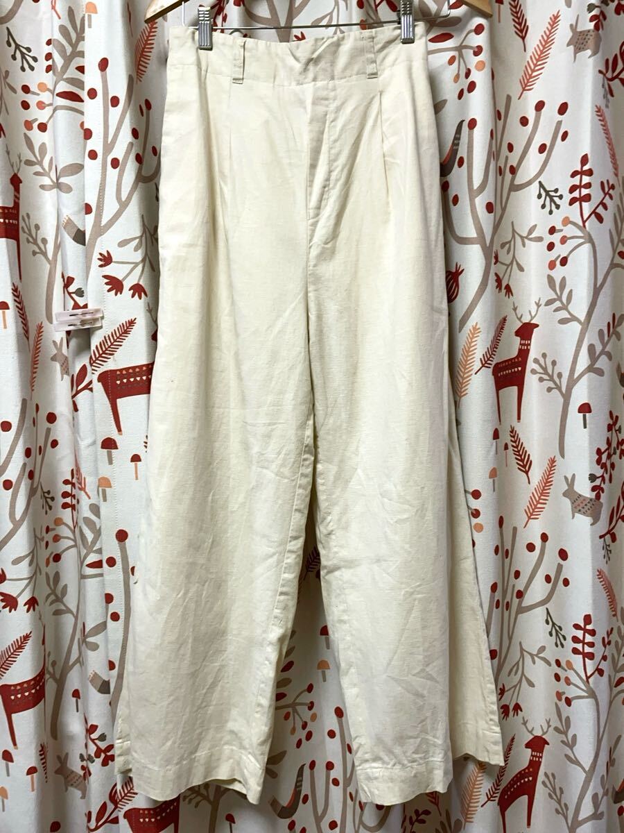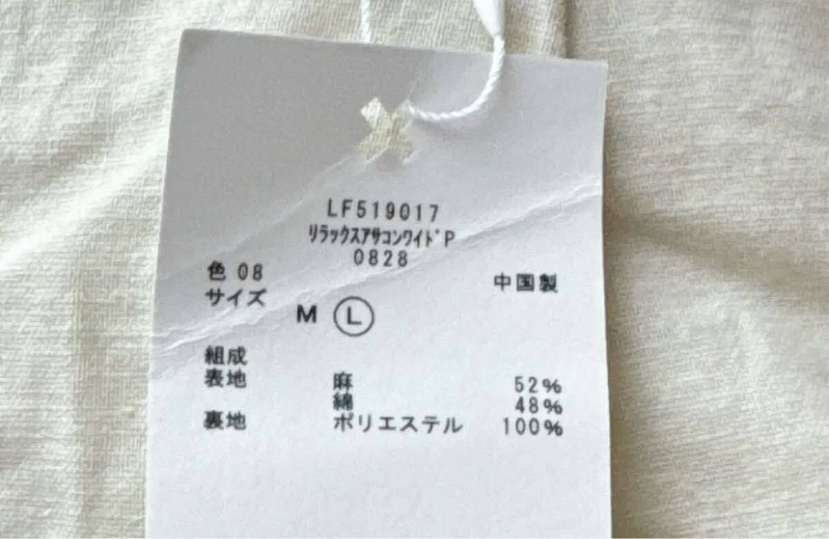 新品 ローリーズファーム 麻混 ワイドパンツ リラックスパンツ アイボリー L ウエストゴム