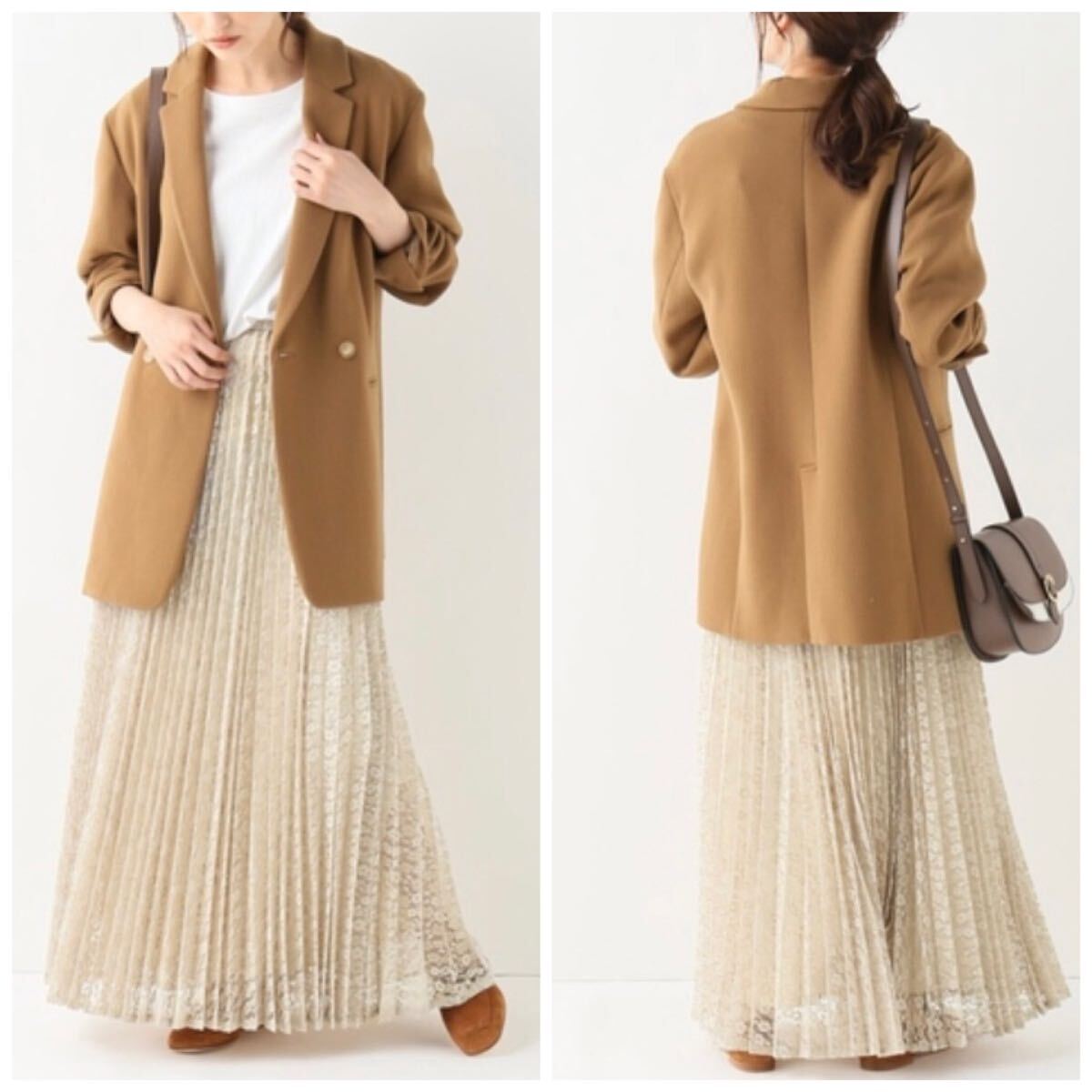 秋冬の重めのウールジャケットやニットとの質感差をつけてバランスを取りやすいアイテムです。