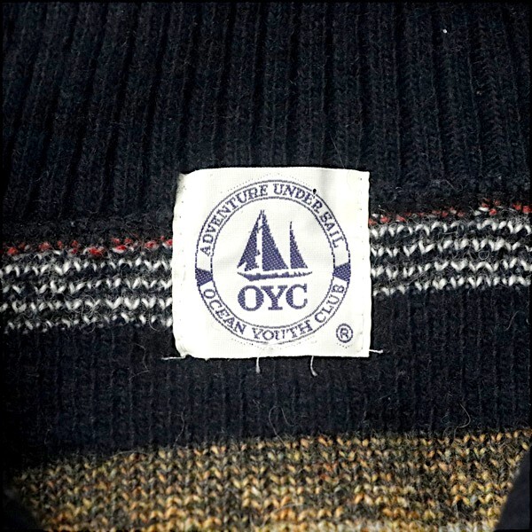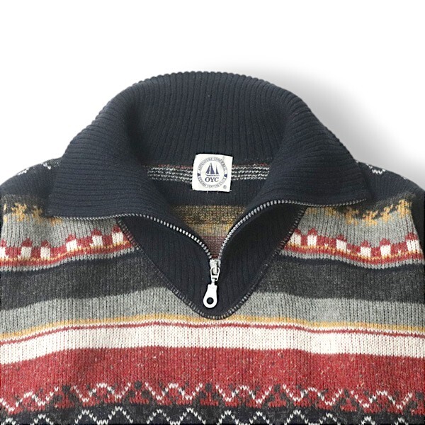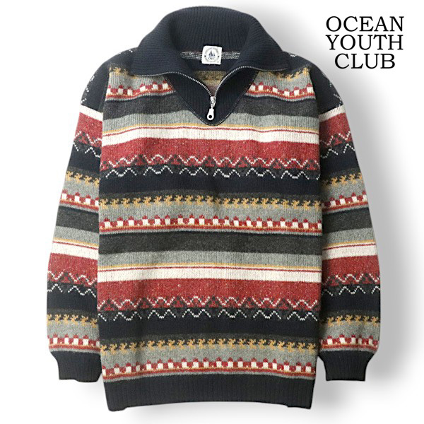 90s ヴィンテージ!美品 フランス製 OCEAN YOUTH CLUB オーシャンユースクラブ ミックスウール フェアアイル柄 SALMIジップ ハーフジップ セイリング ニットセーター ネイビー MIX 42 |