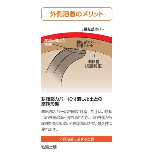 ・肉厚+溶着加工で耐摩耗性は標準セット爪より約2倍
