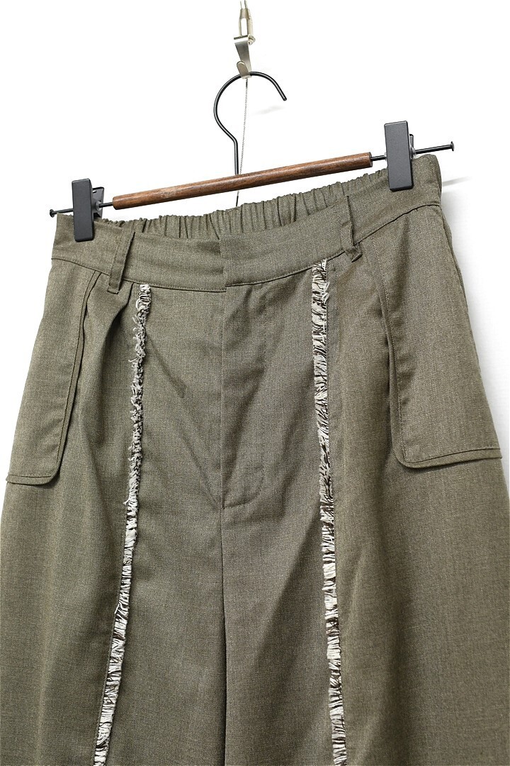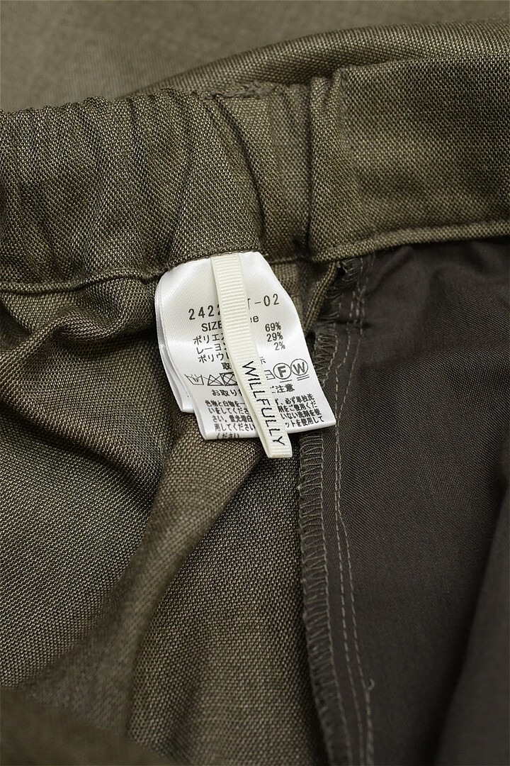 T256/美品 WILLFULLY ウィルフリー センターフリンジラインコンバージョンパンツ ワイドパンツ スラックス ウエストゴム M相当 カーキ