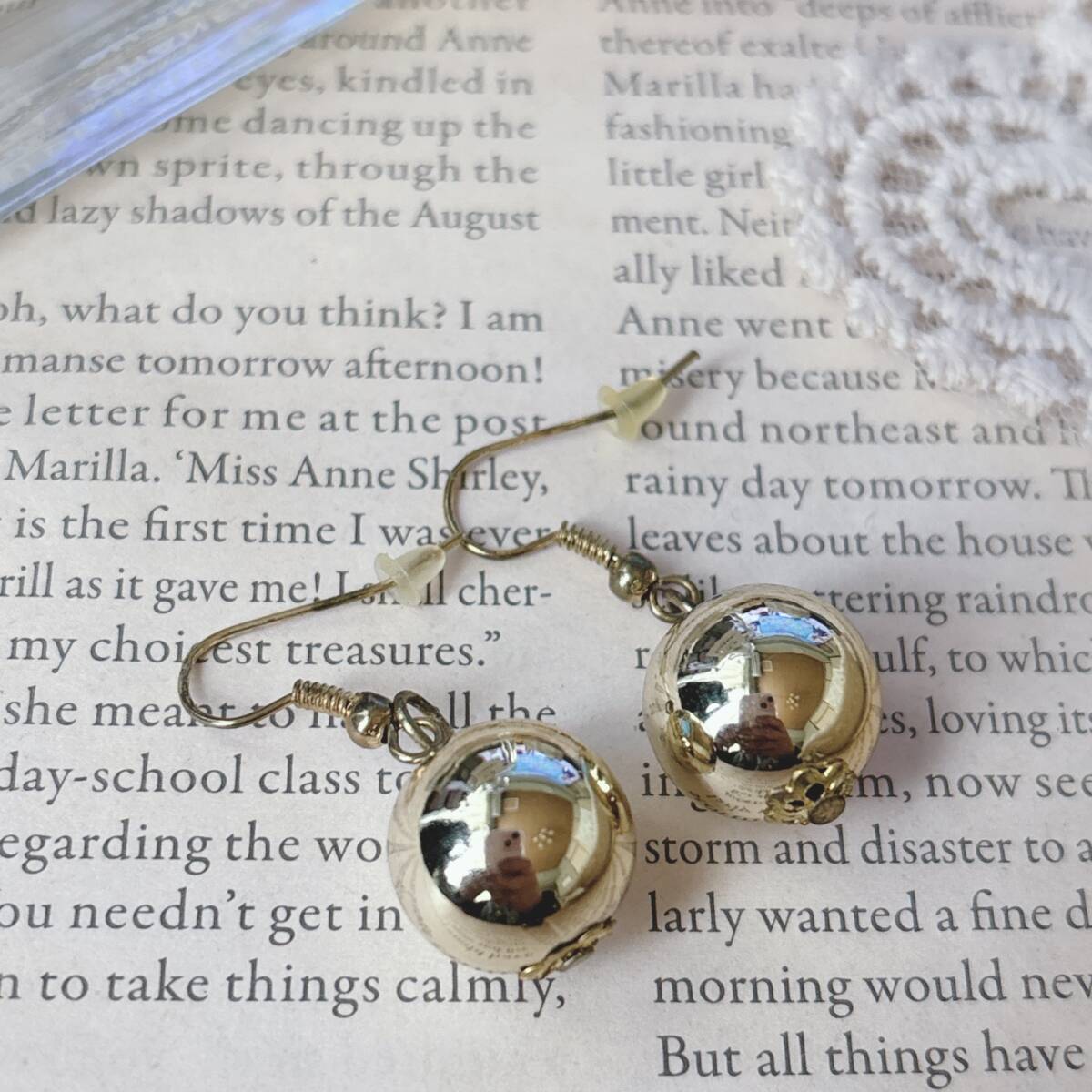 ピアス ゆらゆら ゴールドカラーボール シンプル キレイ 美品 軽量☆Vintage jewelry accessories R0288