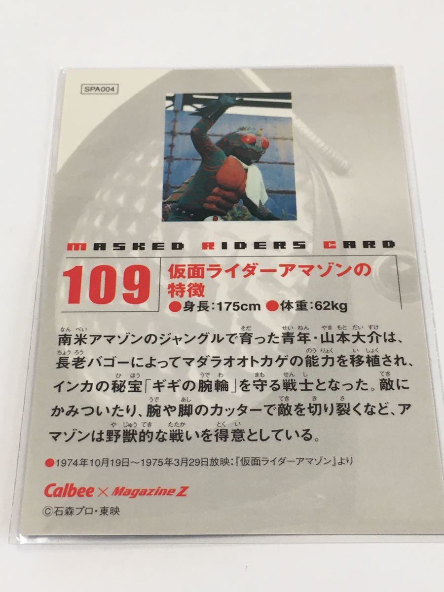 カルビー仮面ライダーR 109 仮面ライダーアマゾンの特徴 キラカード