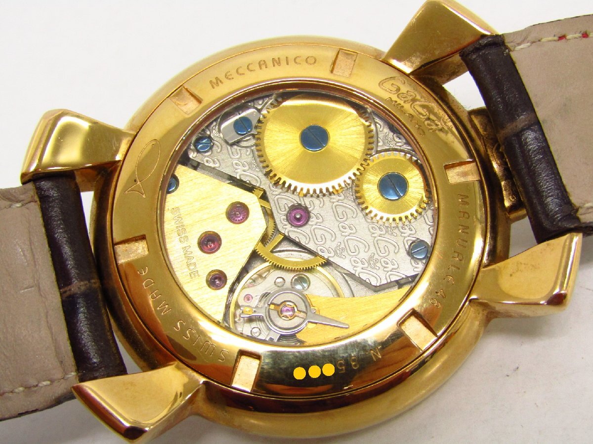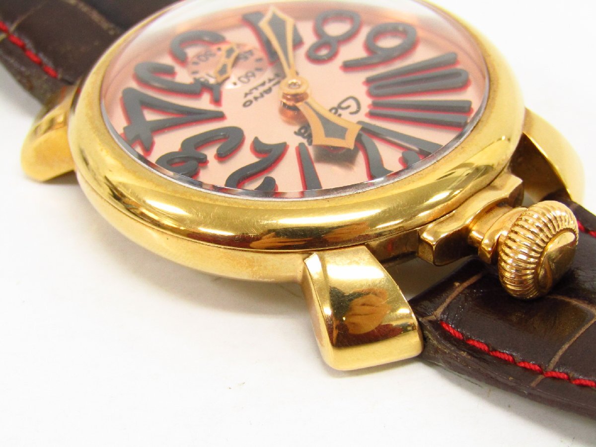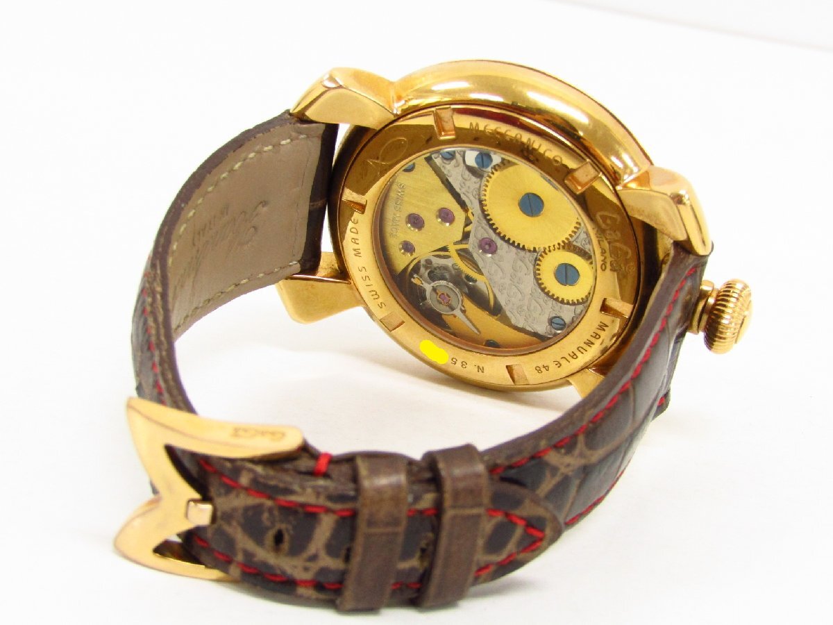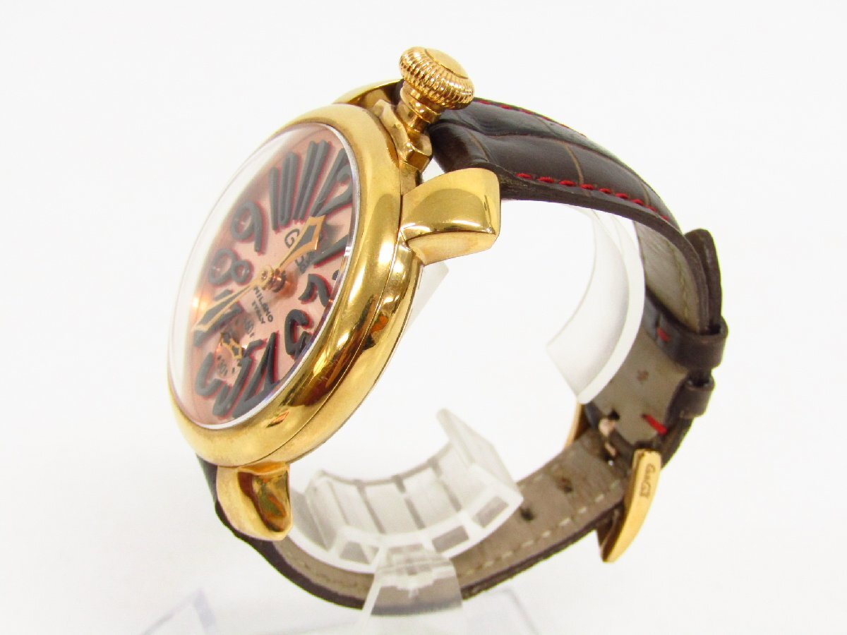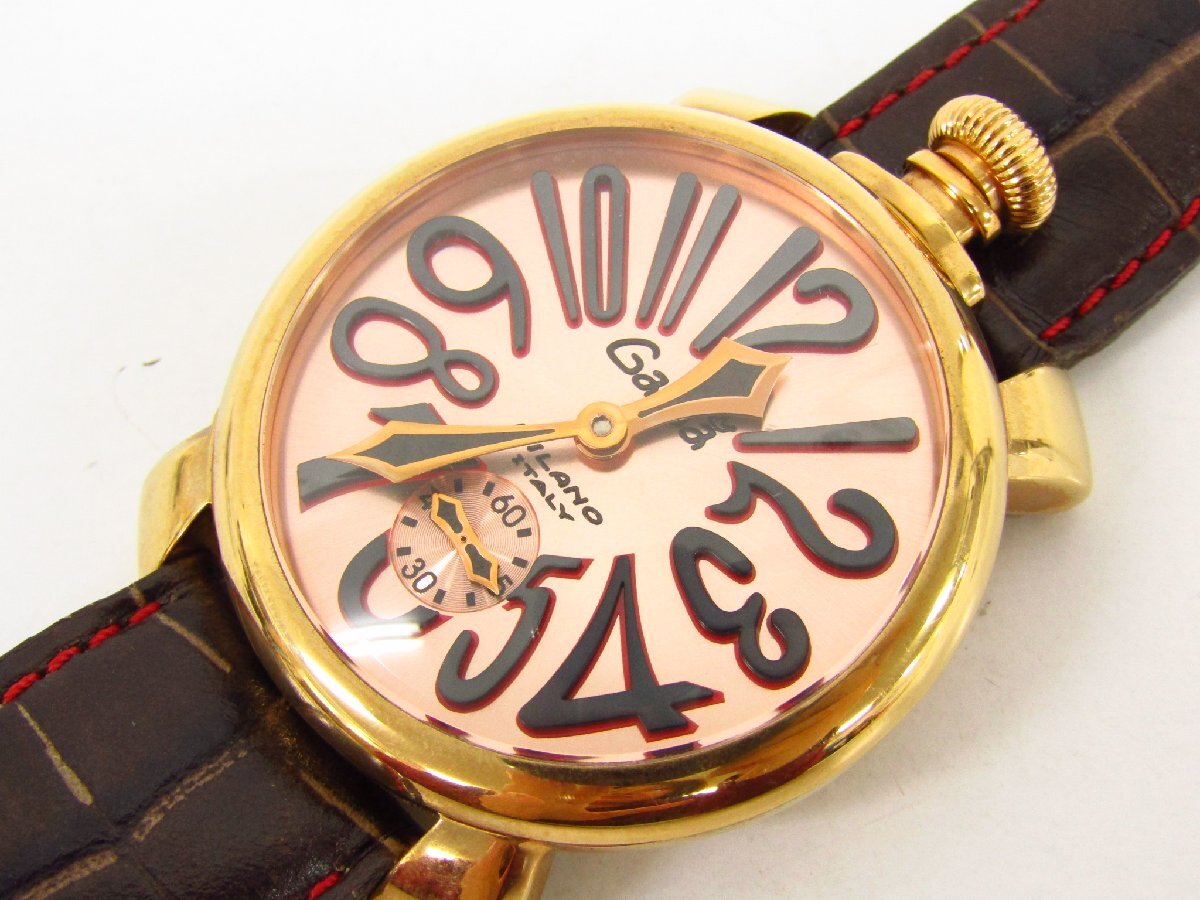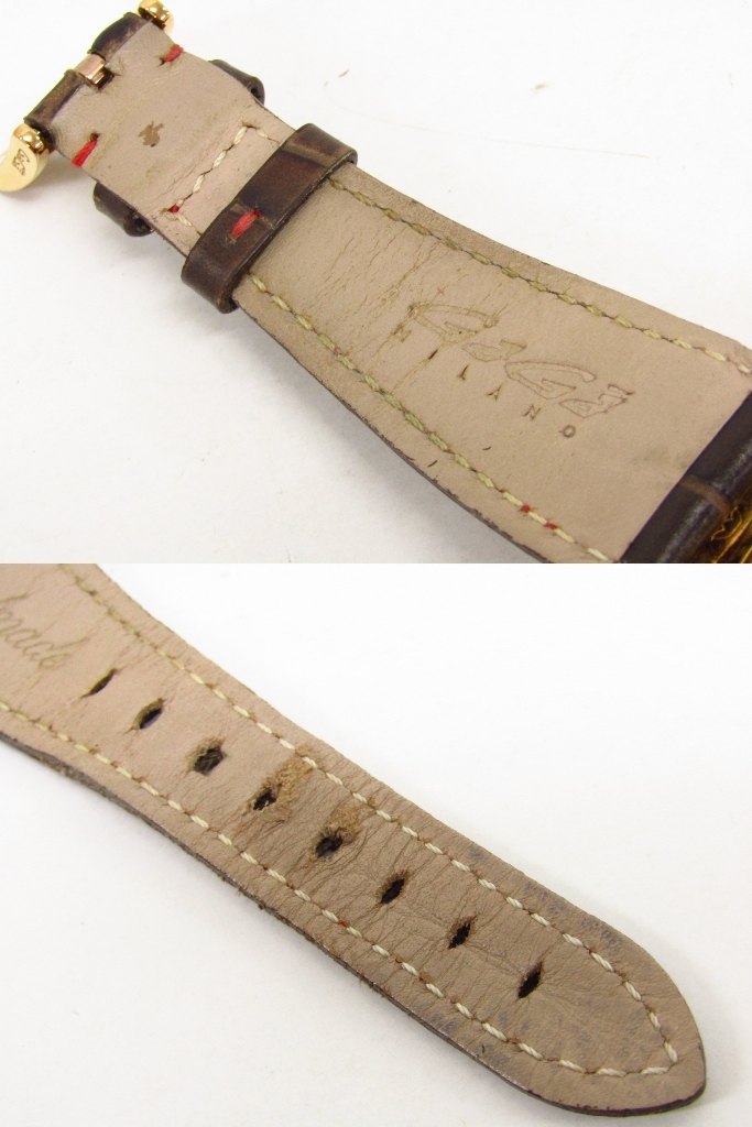 | ※こちらは一般のお客様から買取をした中古商品です。 【状態】 使用感、擦れや擦り傷、汚れ、風防にも少々傷などがございます。 動作・稼動品です。 【詳細】 ブランド:ガガミラノ/GaGa MILANO モデル名:マヌアーレ48 性別:メンズ ケース素材:SS/GP ベルト素材:革 文字盤色:ピンクゴールド 機械タイプ:手巻き Ref.No:5011.11S 機能・特徴:スモールセコンド 付属品:- ケースサイズ(w):約 48mm ベルトサイズ:約 20cm ラグ幅:24mm 日差: +6秒/日 ※参考値 OH歴:弊社では実施しておりません。 保証書の情報:- | |||||||