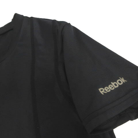 リーボック Reebok TAIKAN LW シャツ K48990 アンダーウエア コンプレッションウェア 丸首 半袖 ロゴプリント 切替え ストレッチ 黒 M