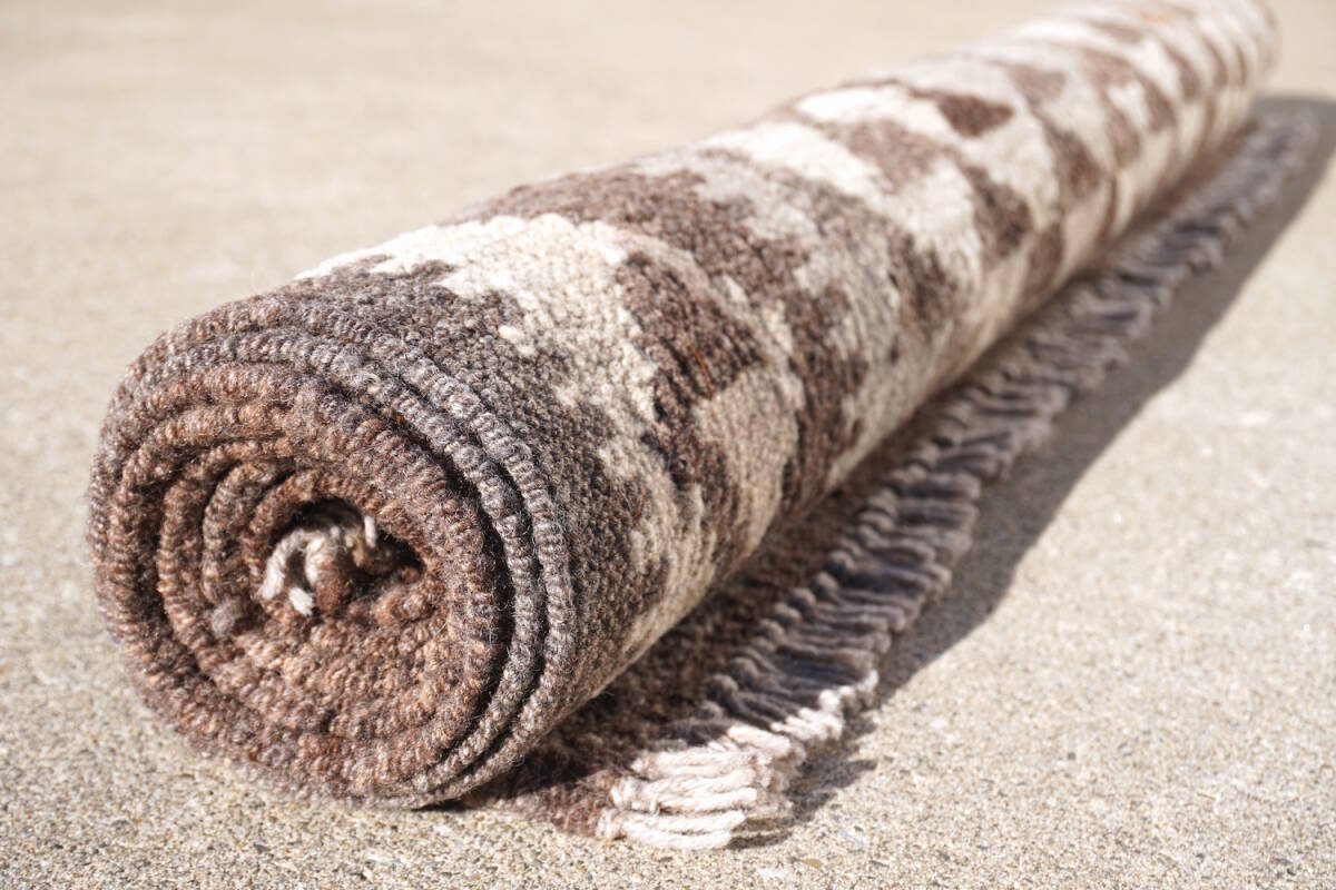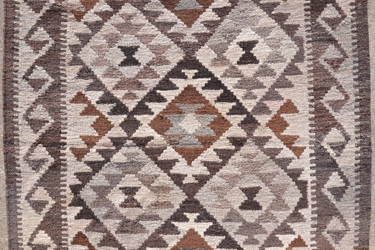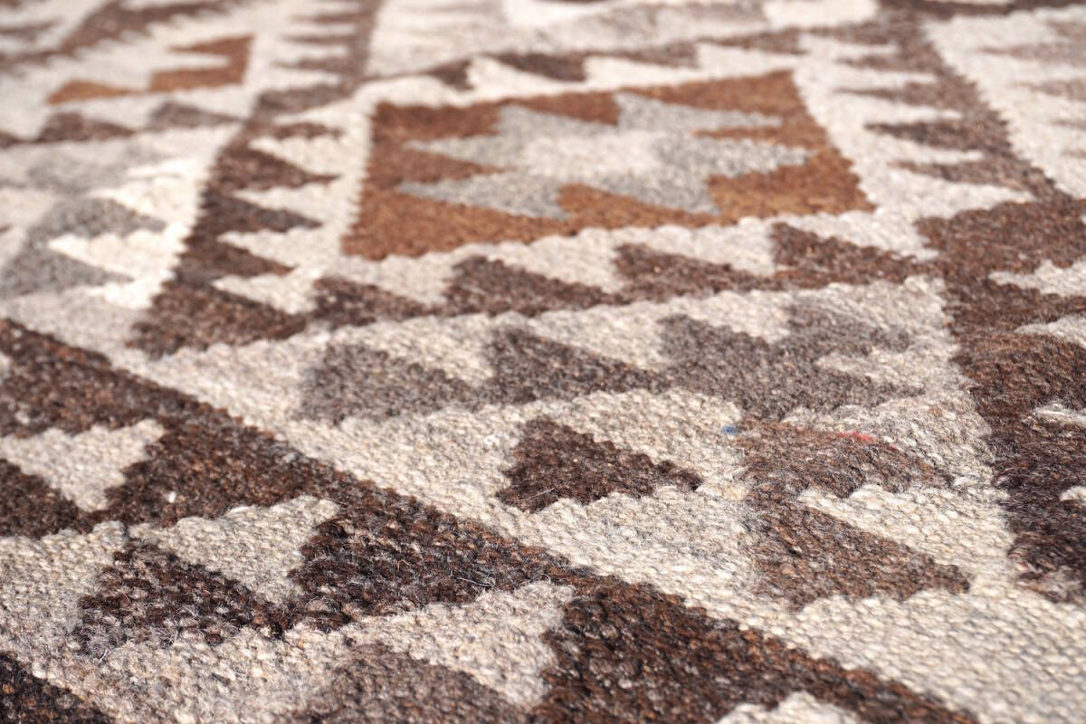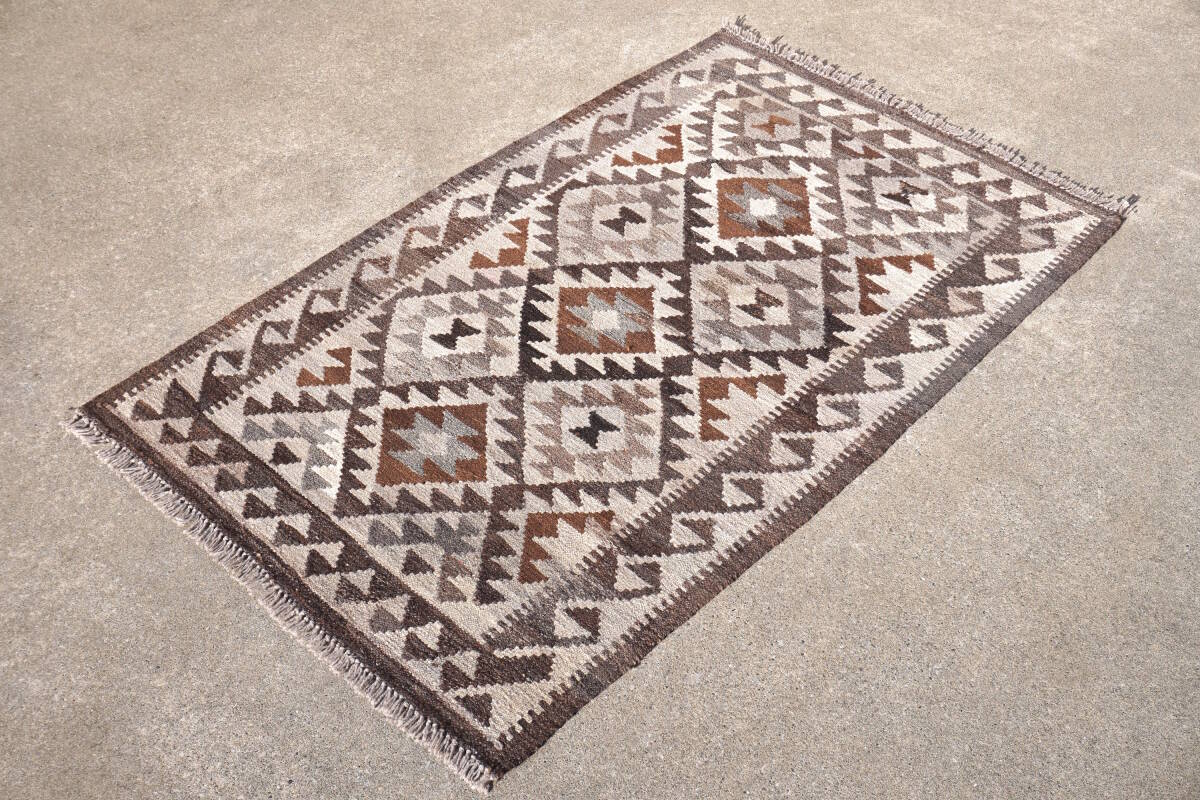 ナチュラルなブラウン系のアースカラーでまとまった、アフガンキリム。