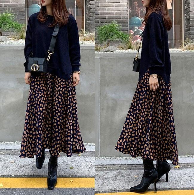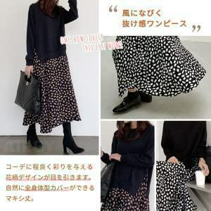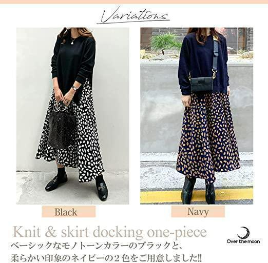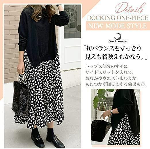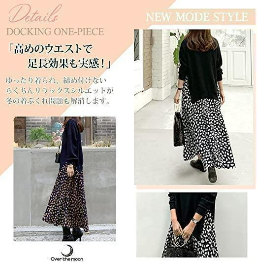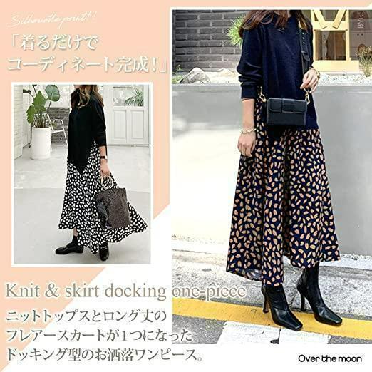 ■着るだけでコーデ完成!ニットトップスとロング丈のフレアースカートドッキング型のお洒落ワンピ。