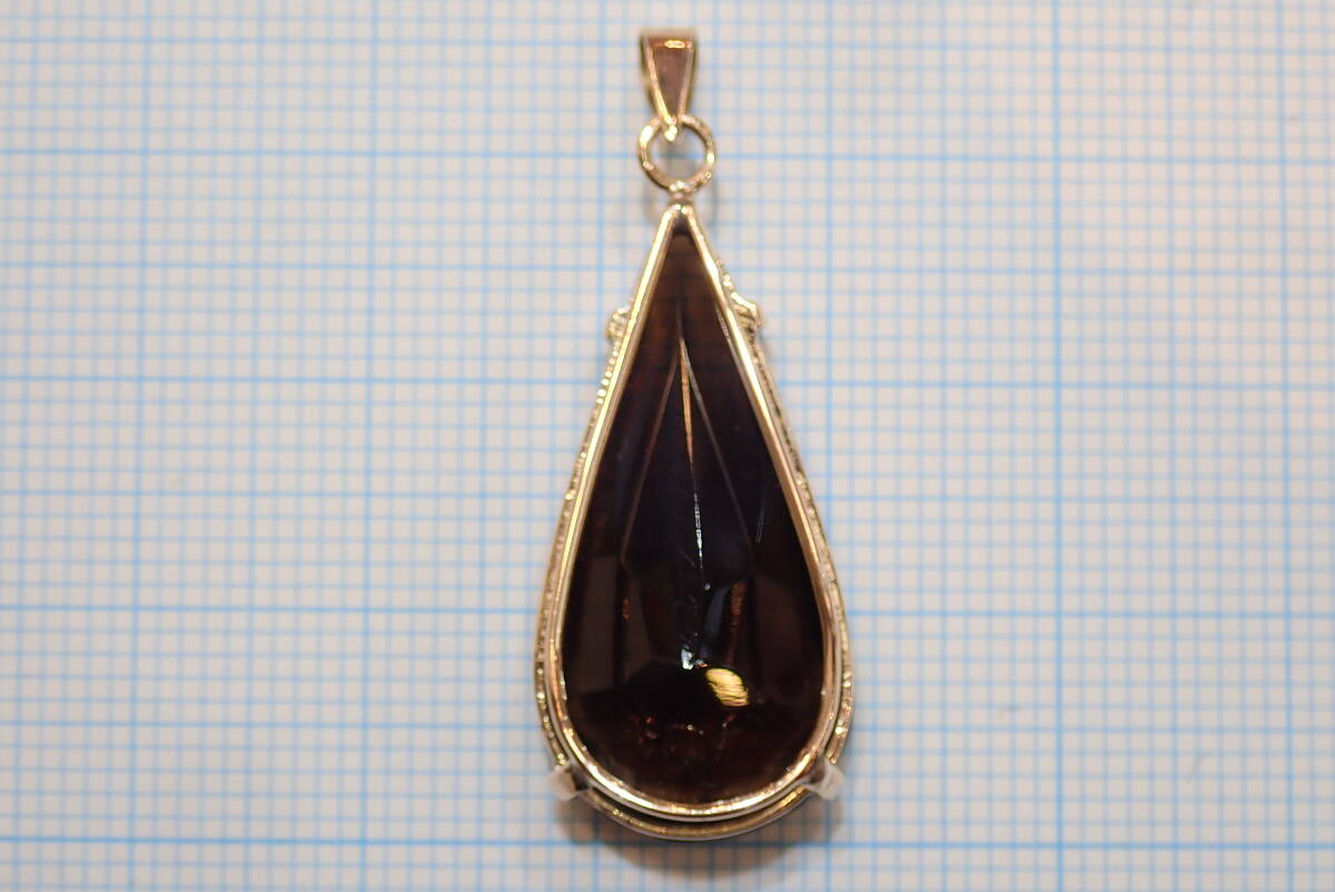 ■K14スモーキークォーツペンダントトップ■アンティーク 昭和レトロ シンプル■水晶■中古美品■