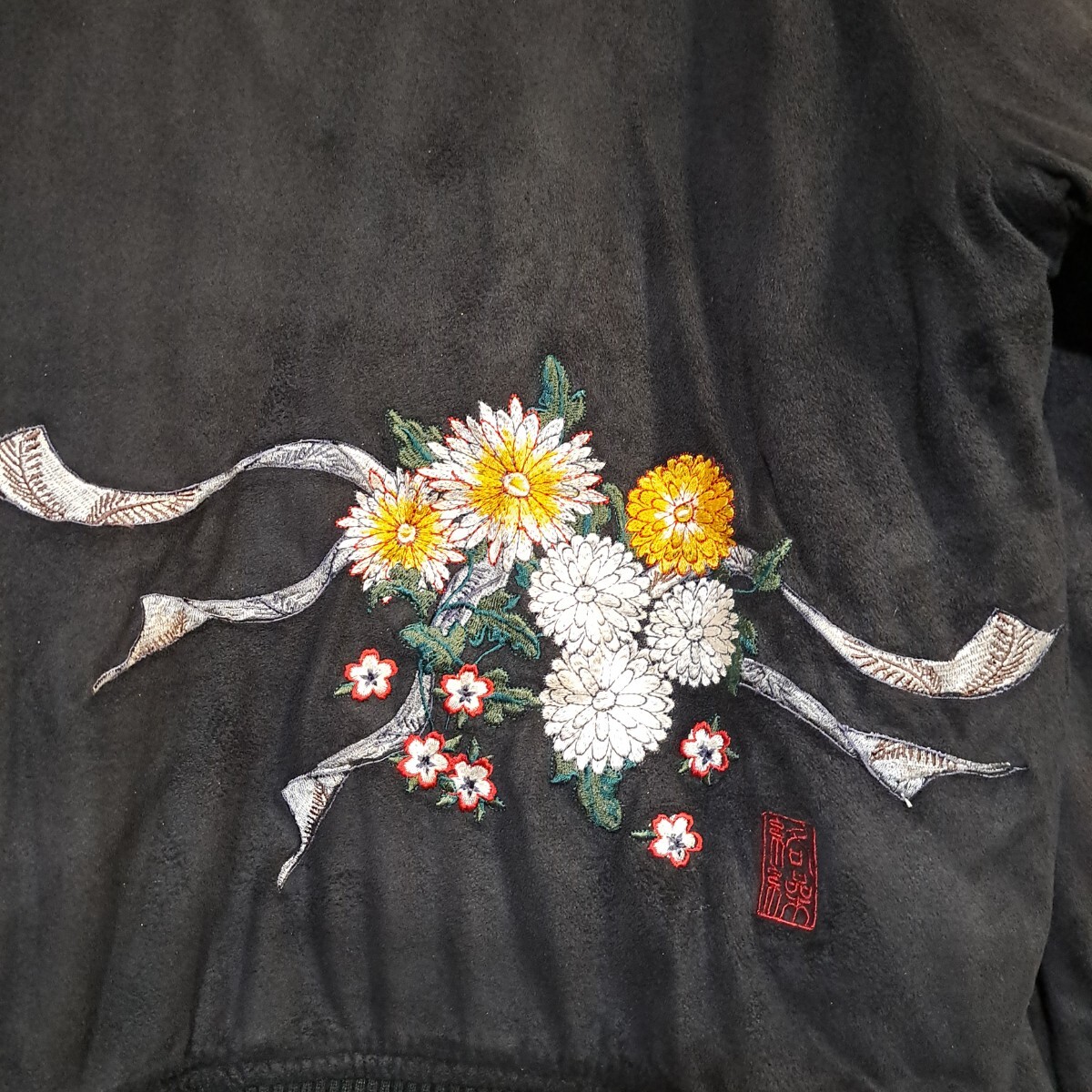 ◆前後に菊と桜の花と熨斗の刺繍、表地は高級感のある別珍(ベッチン、ベルベッティーン)です