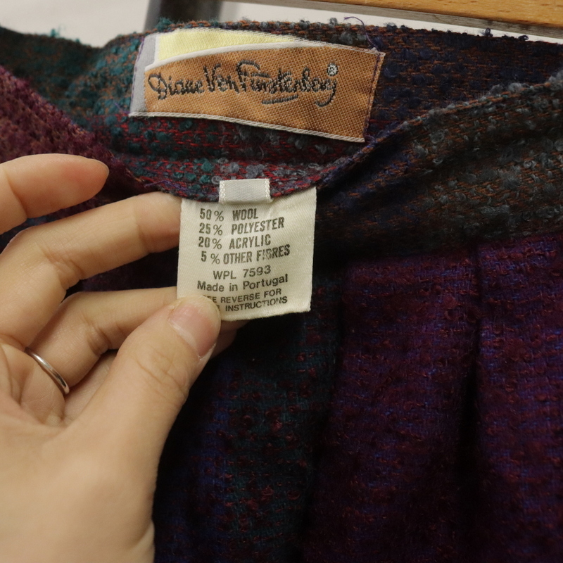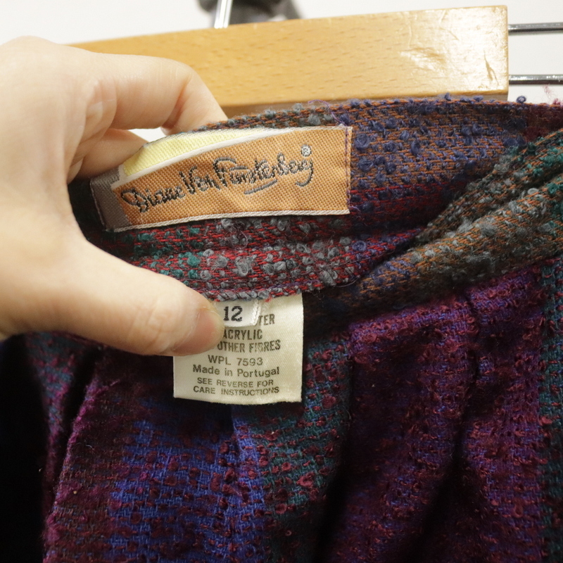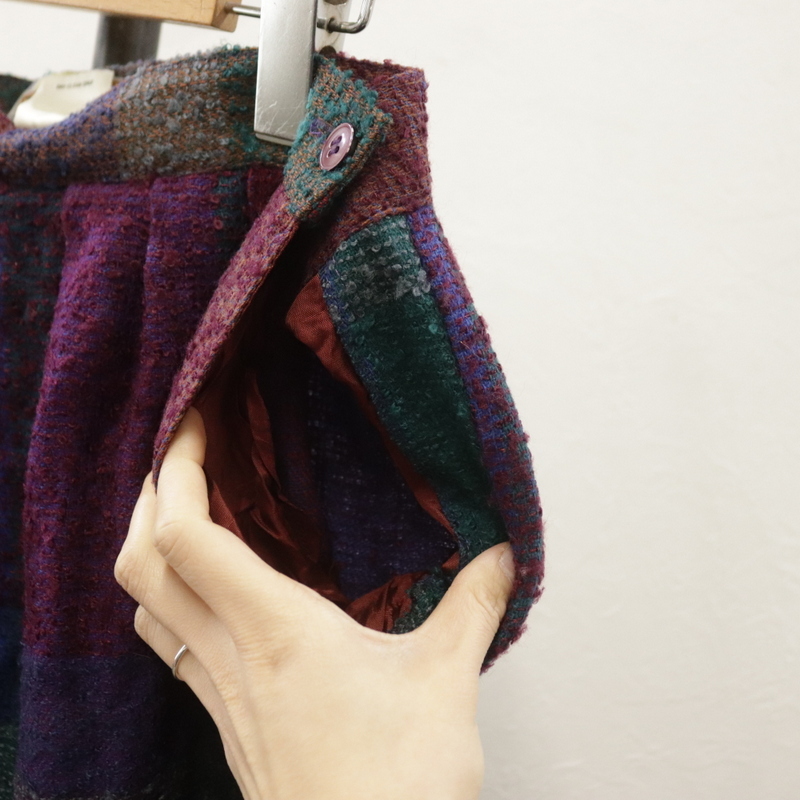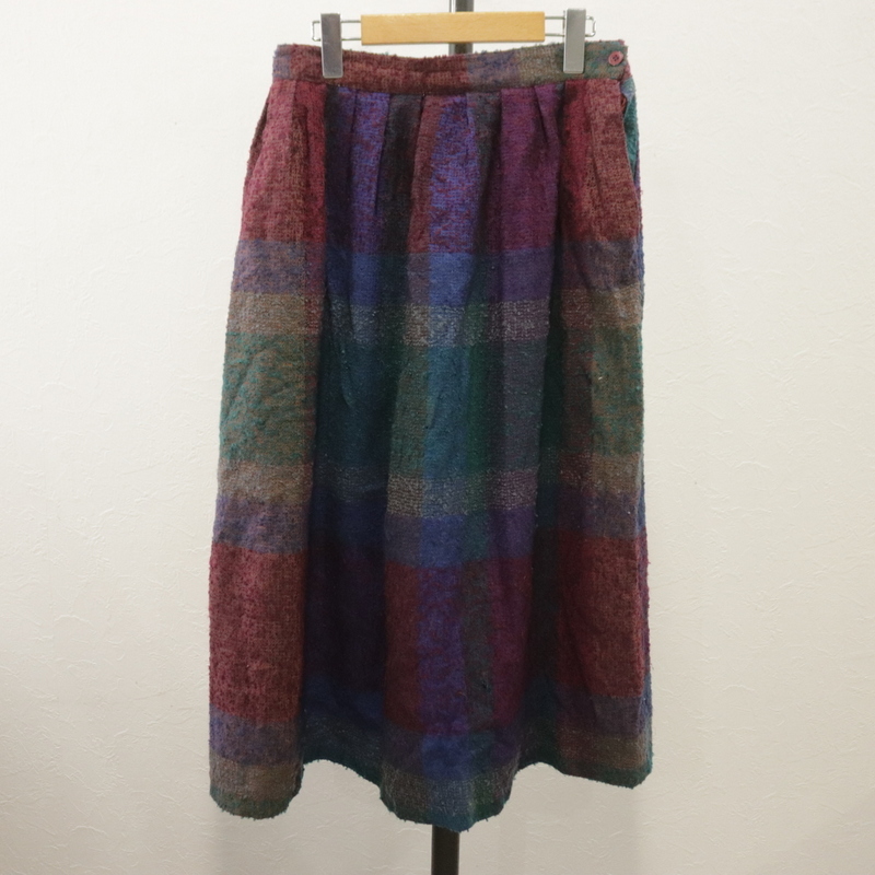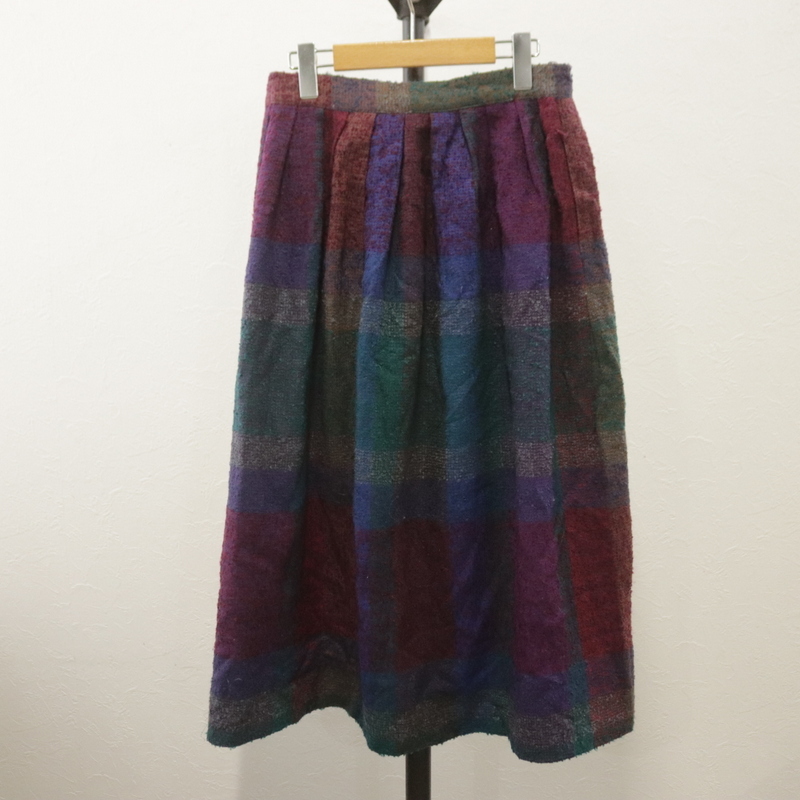 商品名 h49 90sビンテージ ウールスカート■1990年代製 表記12サイズ レディース パープル チェック アメカジ ストリート 古着 激安 希少 00s