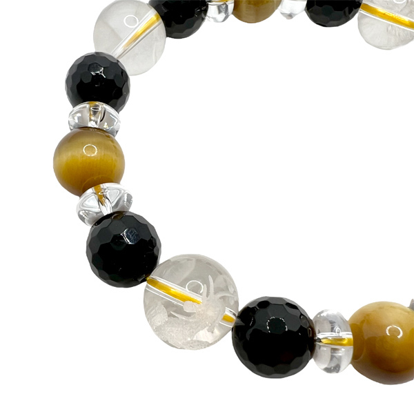 四神彫刻入りの水晶12mmとカットデザインオニキス10mm、