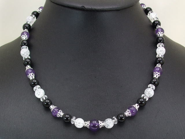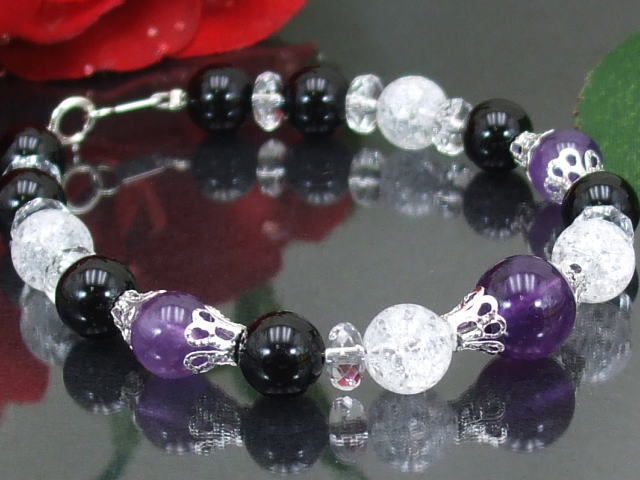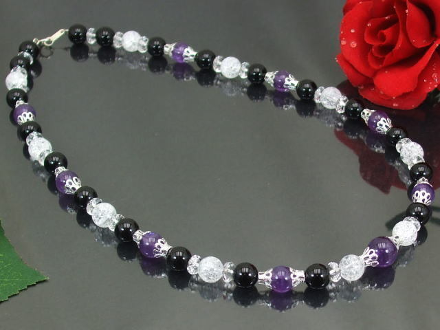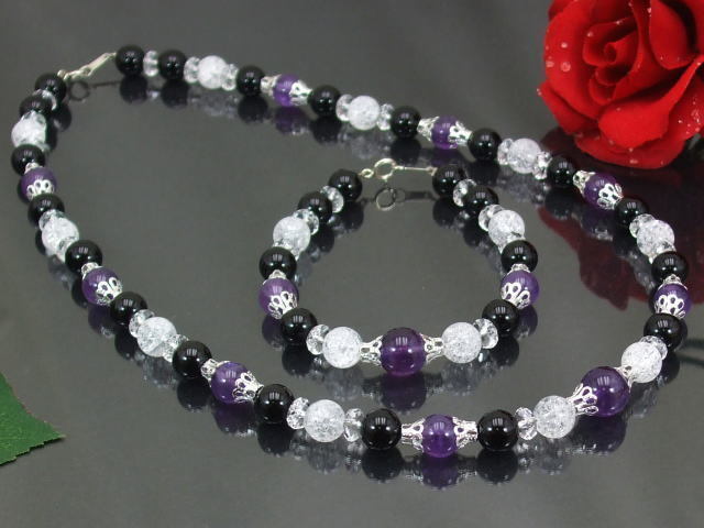★☆★アメジスト&オニキス ネックレス&ブレスレット 厄除け&恋愛運アップ♪ シルバー925 送料無料(a_r)b