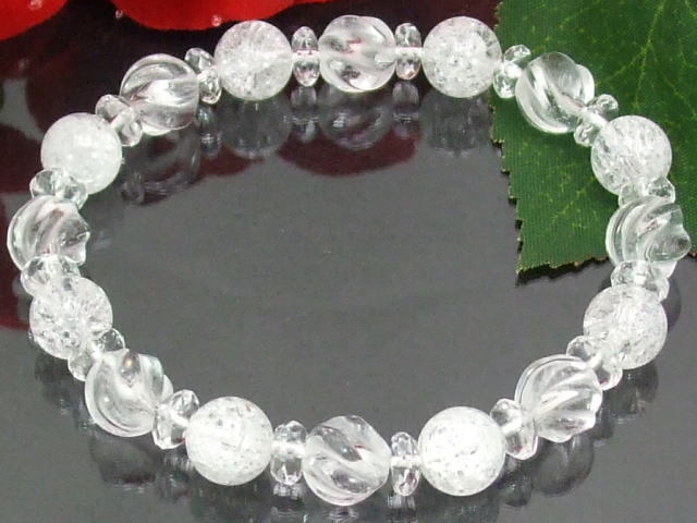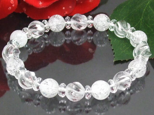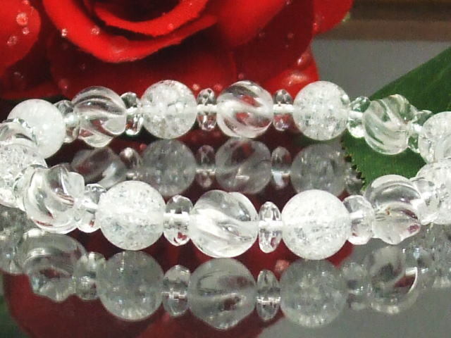 ロロロ 素材 ロロロ クラック水晶8ミリ ツイスト水晶8ミリ カット水晶 サイズは約17.5cm(内径約16cm) サイズ変更は無料です♪