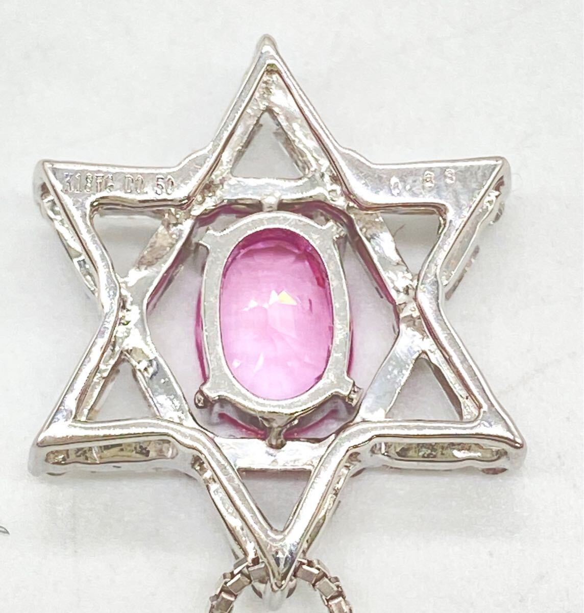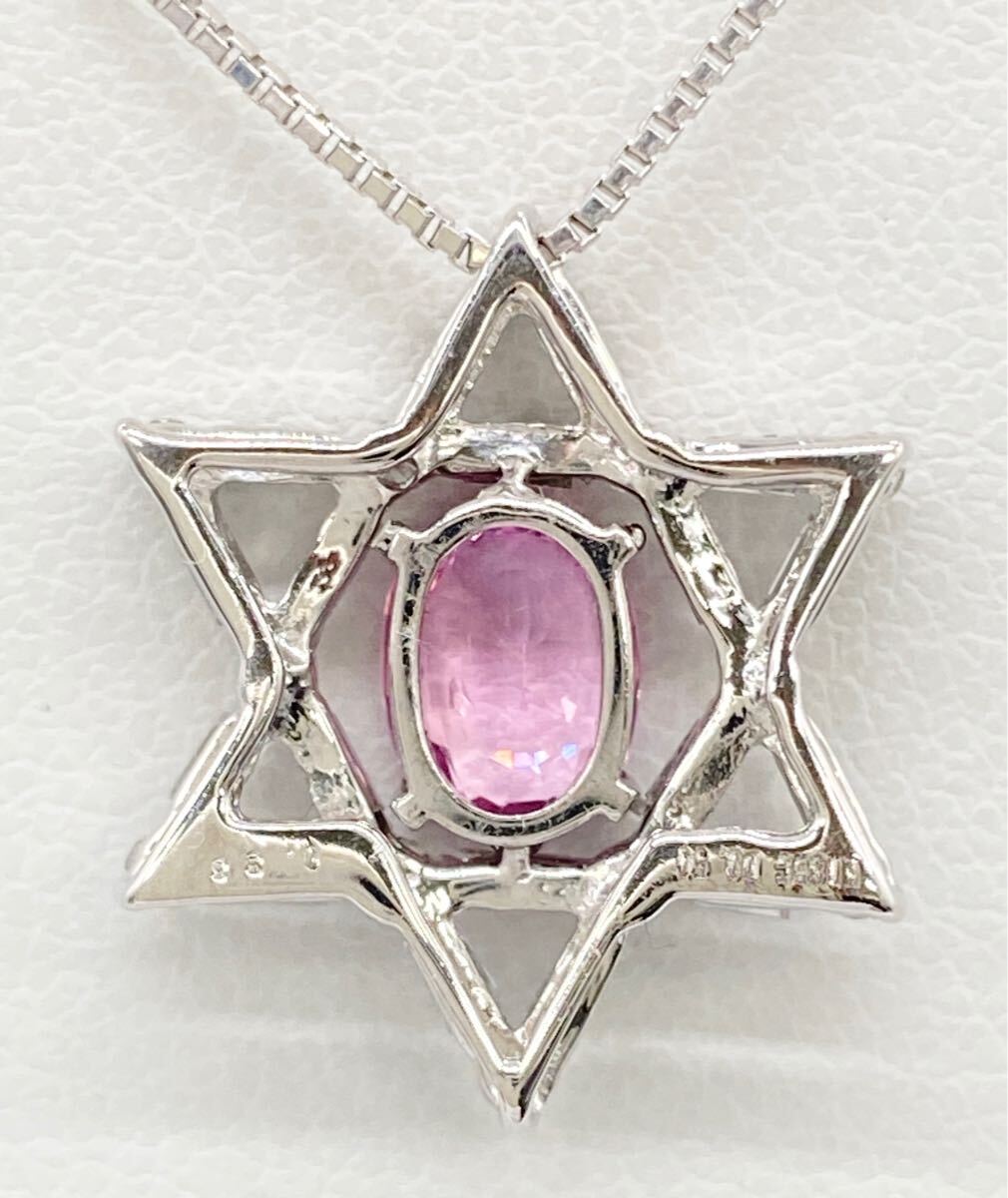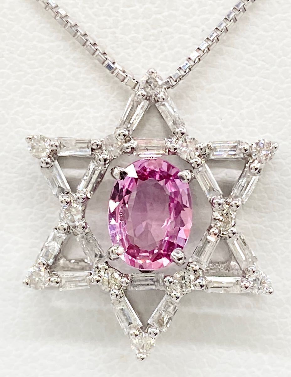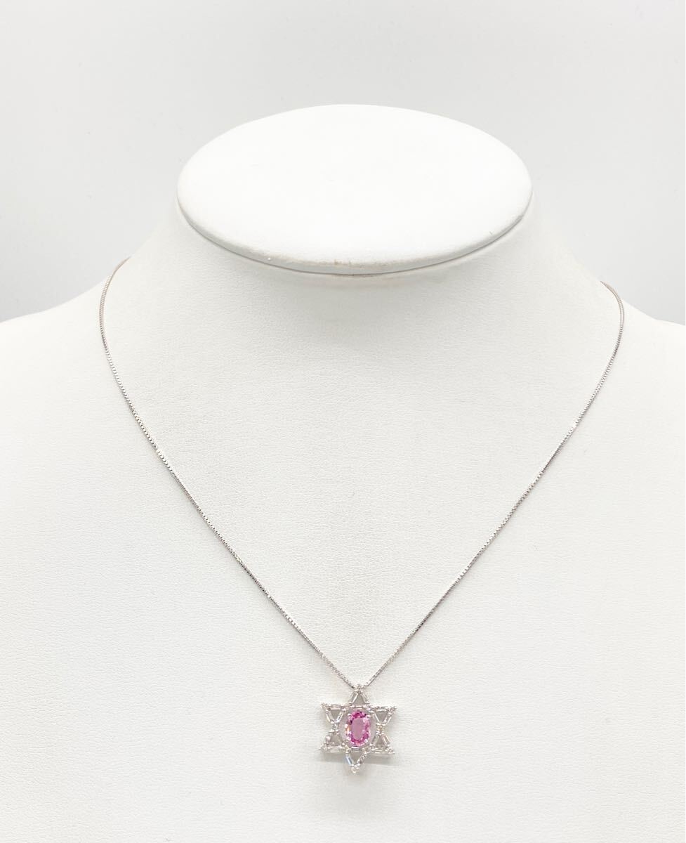 K18WG/Pt850を使用した天然パパラチャサファイアダイヤモンドのペンダントになります。