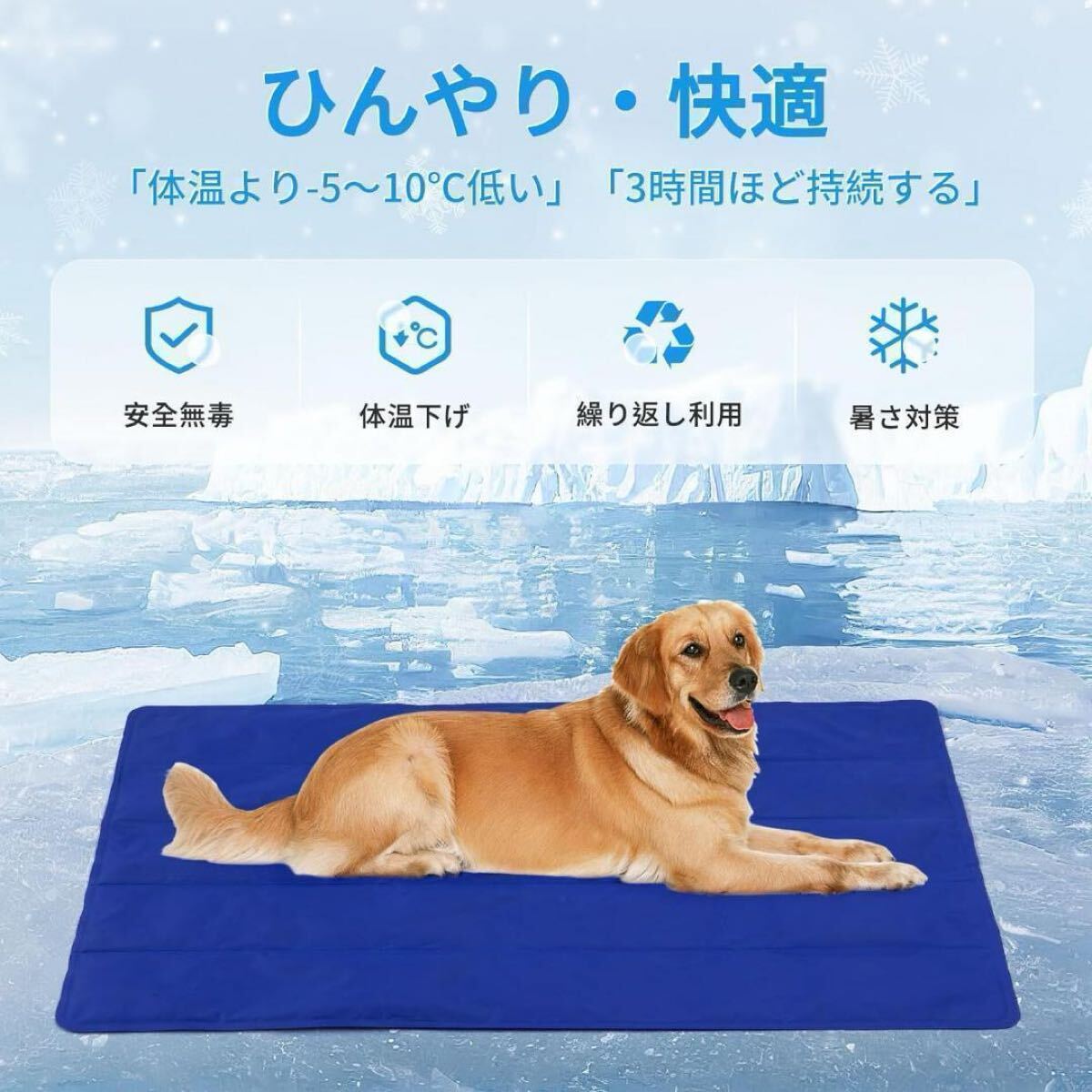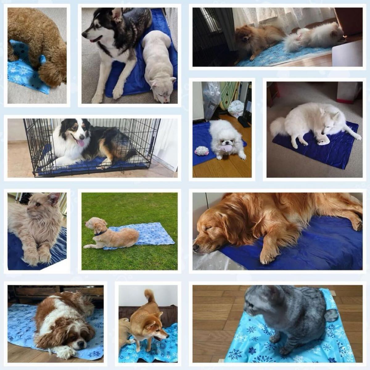 冷蔵不要で自然なひんやり感があり、夏で気持ちよい涼しさを楽しみます。接触するとひんやり感が感じられて、ワンちゃんやねこちゃんがとても涼しく気持ちいいです。ペットの体温を8℃下げることができて、暑さに弱い犬や猫にピッタリの熱中症対策品です。