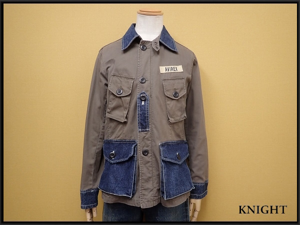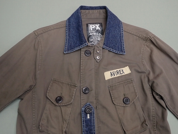 PX AVIREX アヴィレックスのジャケットです。衿、ポケット、袖口等デニムを使用したデザインです。素敵にお使い頂けると思います。気になる方は是非ご検討下さい。 | |