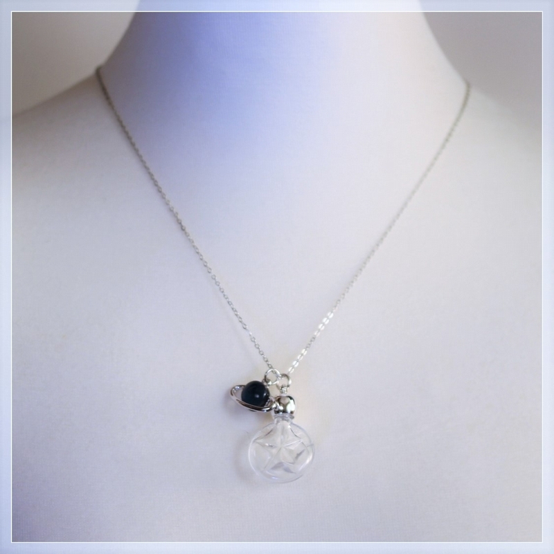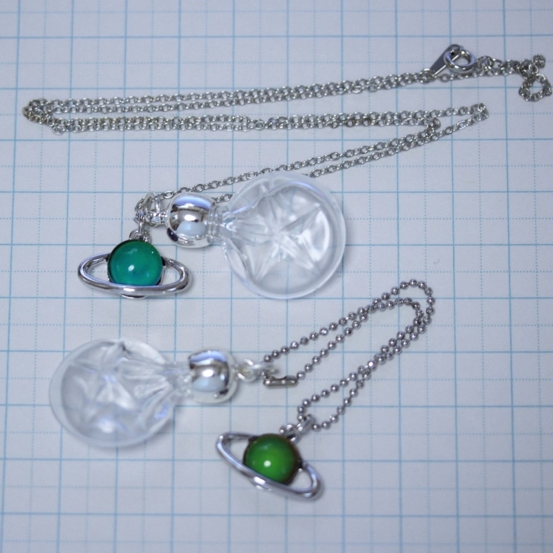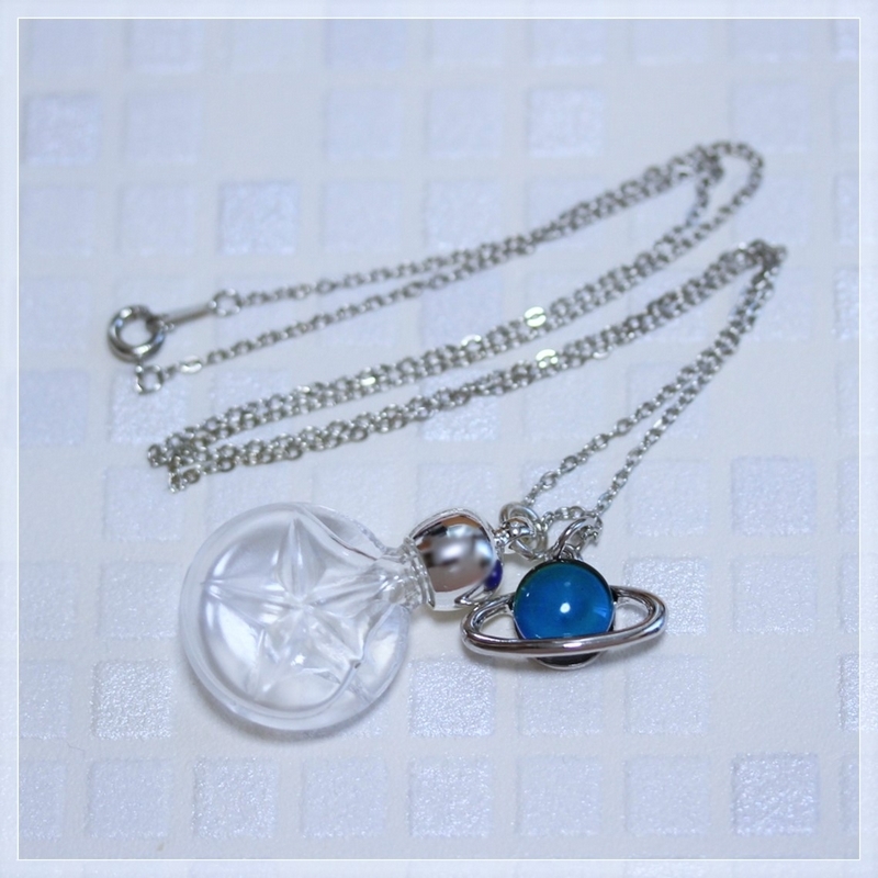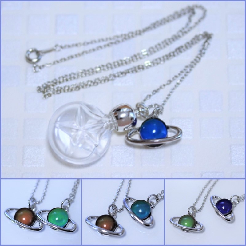 F7423N/硝子の香水瓶ネックレス 色が変わる土星ペンダント 星の香水瓶 温度変化 カラーチェンジ 日本製の綺麗な惑星 宇宙好きさんに