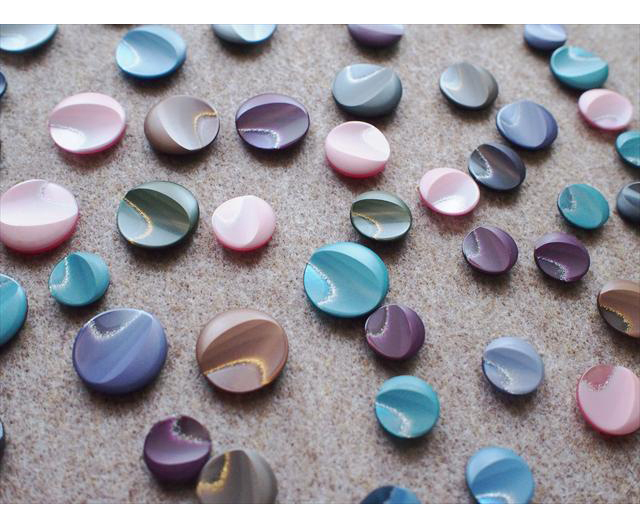 レトロビンテージ手芸雑貨*ラメの入った銀河系みたいなボタン・お買い得66個セット・Φ15~22㎜・☆パーツデコ素材リメイク☆
