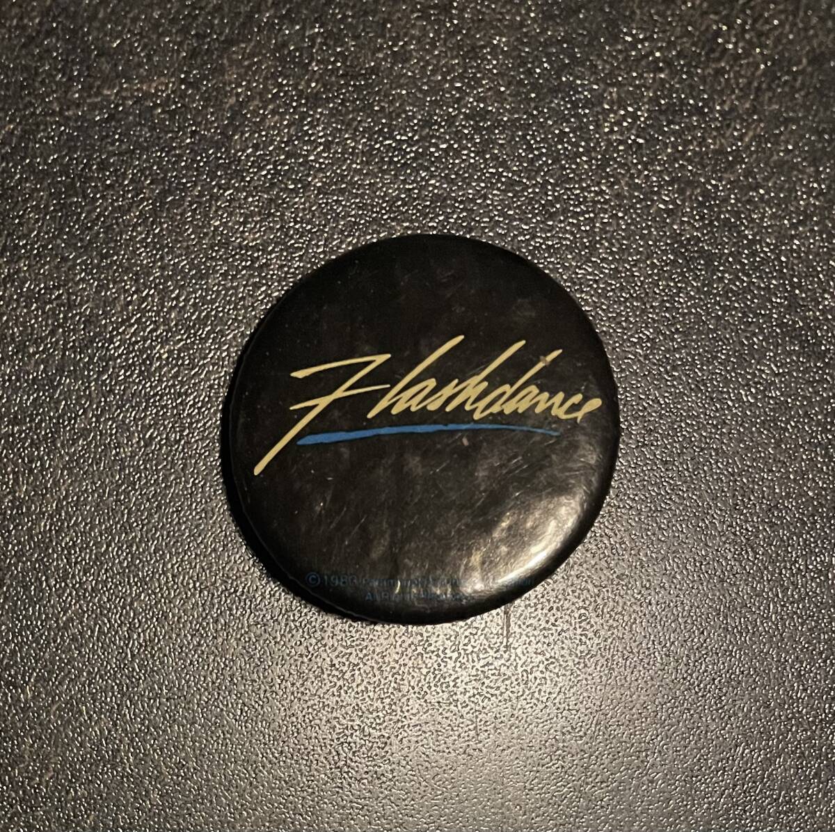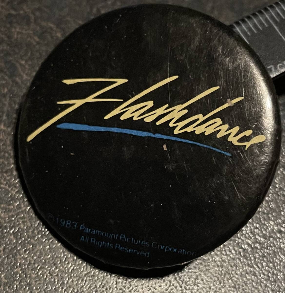 C)1983年80sビンテージFlashdanceバッジ黒ピンズ希少タイトル当時物83年オフィシャル映画フラッシュダンス洋画ムービー物80年代オールド