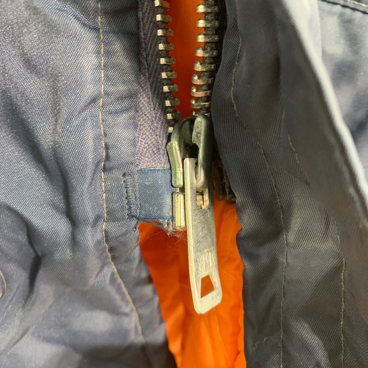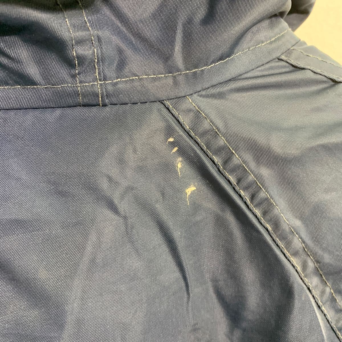 前身頃、右袖、後身頃に汚れ、フロントジップに破損が有ります。