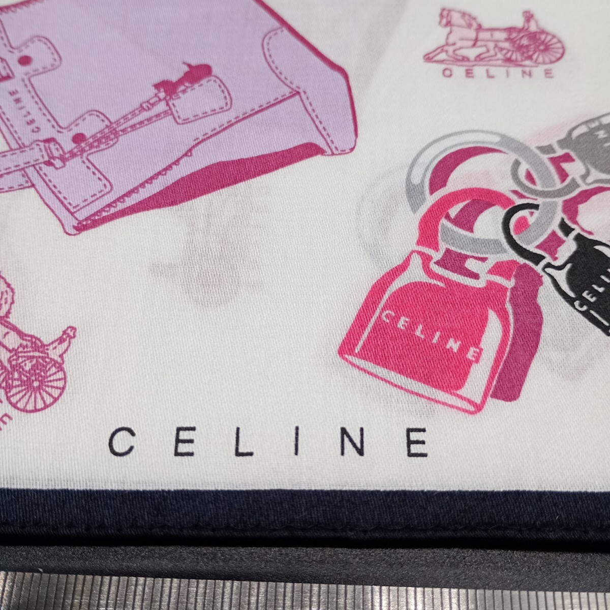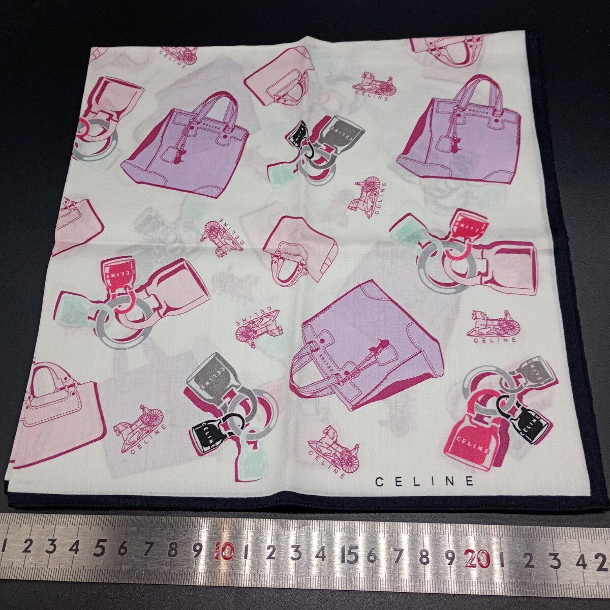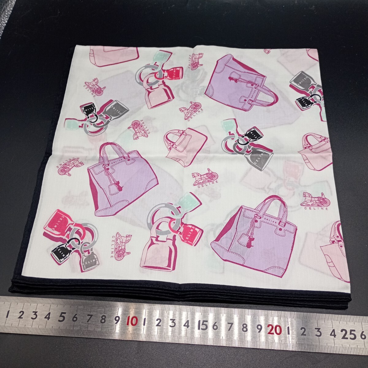 CELINE セリーヌ ハンカチ ホワイト バッグ 馬車 キー 柄 ふちブラック  no.3013