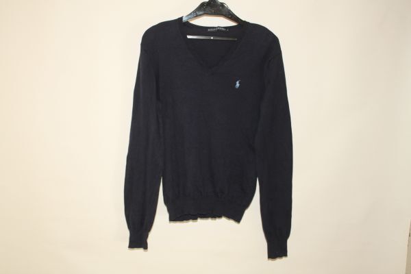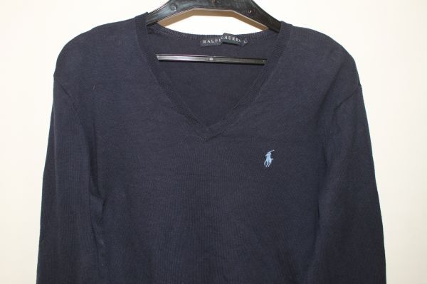 3497*11号:ラルフ、紺、薄地綿、Vネックセーター