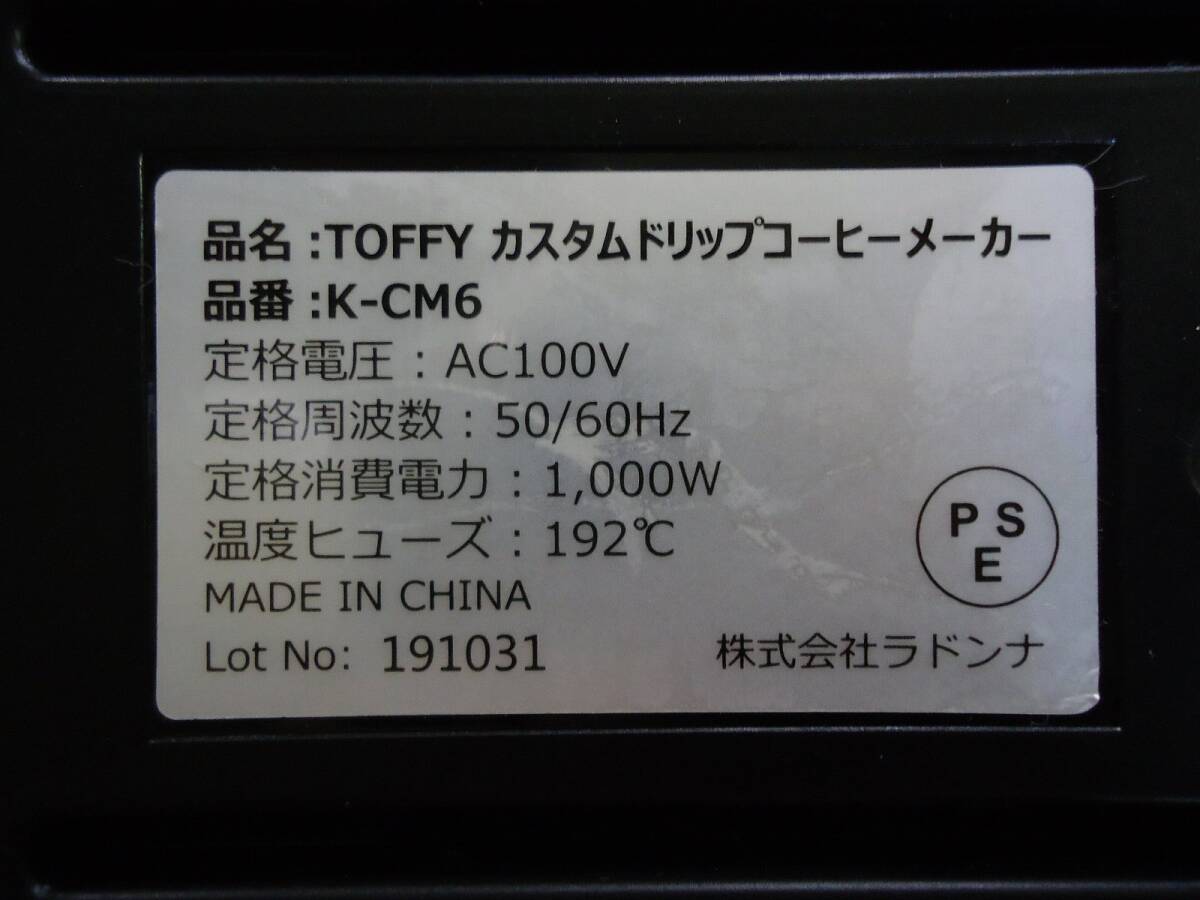 LADONNA ラドン0ナ Toffy トフィーカスタム ドリップコーヒーメーカー K-CM6-RB リッチブラック 美品