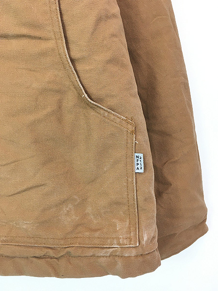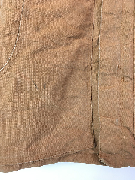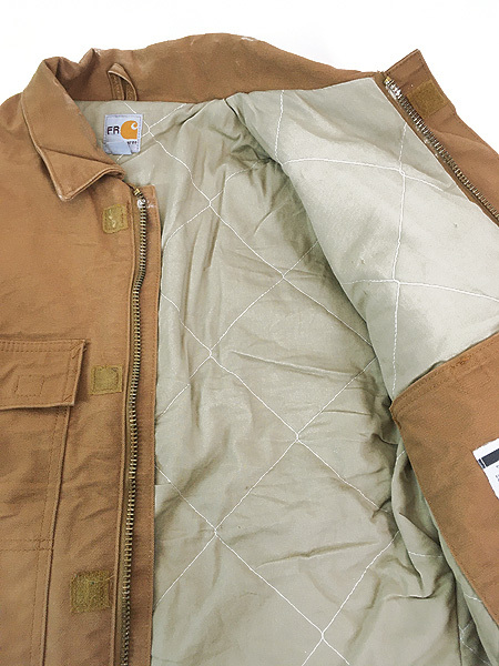 フロントはジップとベルクロの二重構造、ウエスト内側にドローコード、裏地は中綿入り黒のナイロンキルティング、袖内側リブ付きで防寒性も期待できます。