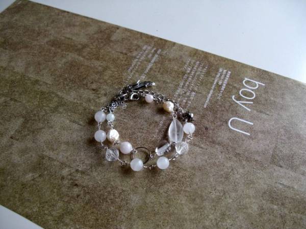 ロマンチックを紡いで・・シリーズです♪やさしい気持ち・・繊細な白のブレスレット2点セットです♪パステルベリルのブレスレットは6ミリ、8ミリの丸玉のベリルに淡水パールやフロスト水晶や水晶を合わせて大人可愛い表情です♪長さは全長23センチ位で調節自由です♪♪ホワイトジェイドのブレスレットは8ミリの丸玉のホワイトジェイドにクリスタルのデザインチェコビーズを合わせました♪長さは全長23センチ位で調節自由です♪単品やお揃いのネックレスも出品しています♪シンプルで飽きのこないいつまでも着けられるデザインを考えて作りました!ハンドメイドをご理解頂いてノークレーム、ノーリターンでお願いします