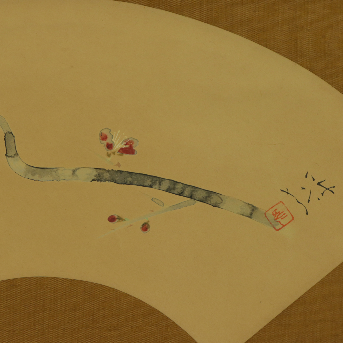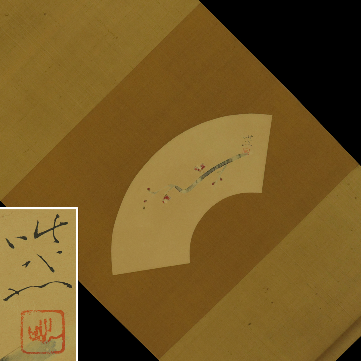 | №2211114【模写】田中以知庵【扇面・紅梅】◆紙本◆掛軸 | |