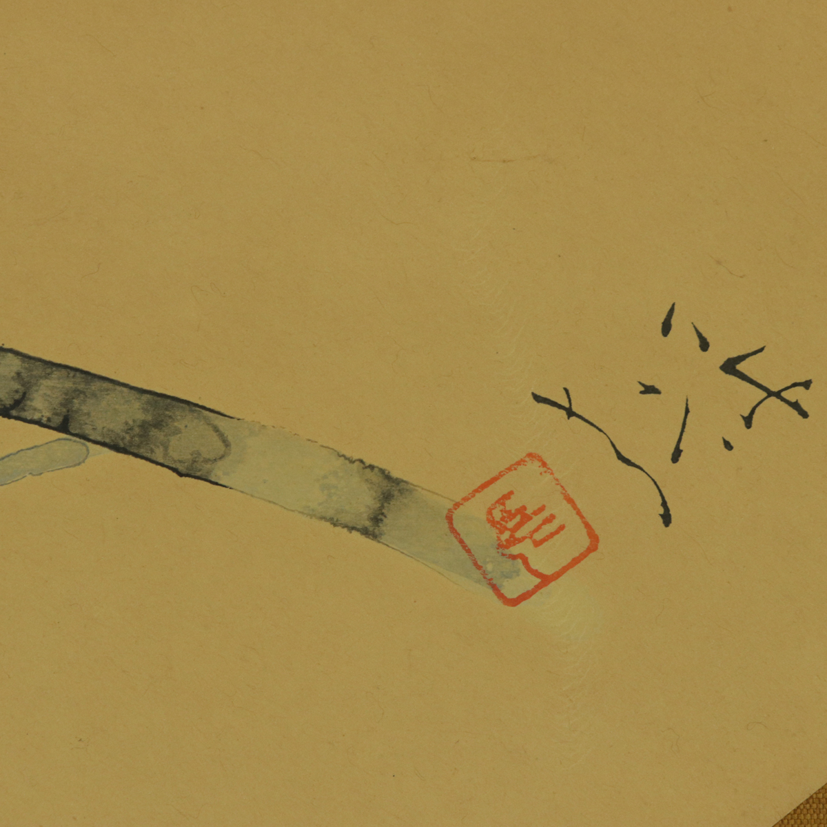 田中以知庵 1893-1958 明治-昭和時代の日本画家。明治26年7月14日生まれ。 松本楓湖にまなび,大正11年春陽会創立の際に客員,昭和4年日本南画院同人となる。 新文展,日展に出品し審査員もつとめた。昭和33年3月15日死去。64歳。 東京出身。名は兼次郎。別号に咄哉,咄哉州,一庵。作品に「清水寺」「南浦遅日」など。 本紙は、軽い染み、汚れ、皺、ヤケがあります。 表装は、染み、汚れ、折れ、皺、擦れ、ほつれ、くすみ、軸先に汚れがあります。 【サイズ】 作品 横約43.5cm×縦約20cm 表装 横約54cm×縦約113.5cm |
