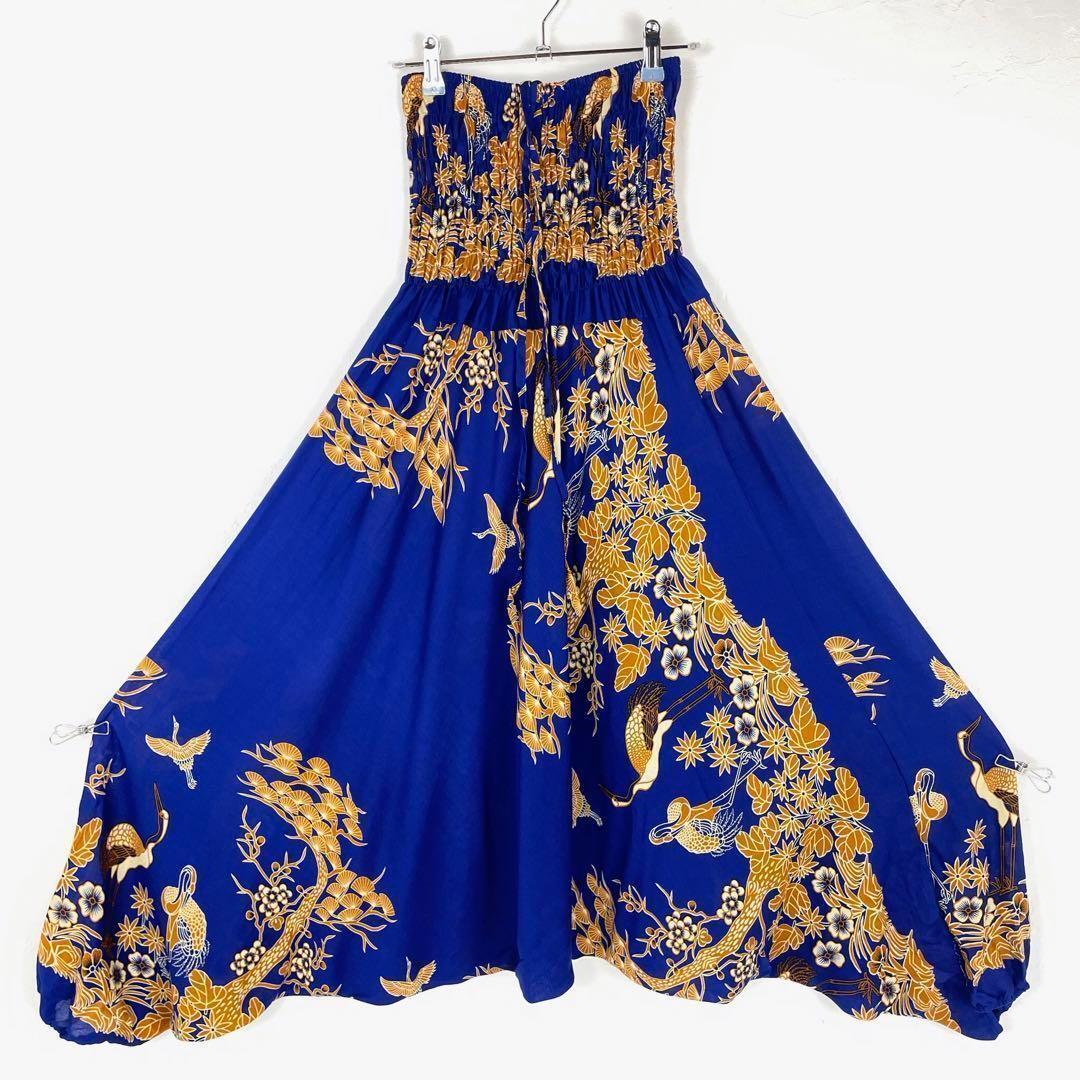 【新品】 サルエルパンツ タイパンツ アラジンパンツ 男女兼用  ヨガ ダンス  お部屋着 2way レーヨン Y335 770ブルー