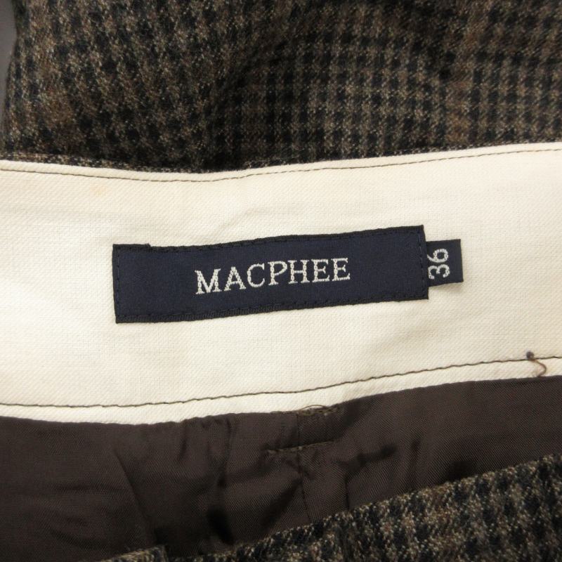 マカフィー MACPHEE トゥモローランド ウールパンツ スラックス ワイド チェック柄 36 S 黒 ブラック 茶 ブラウン ■GY39 レディース