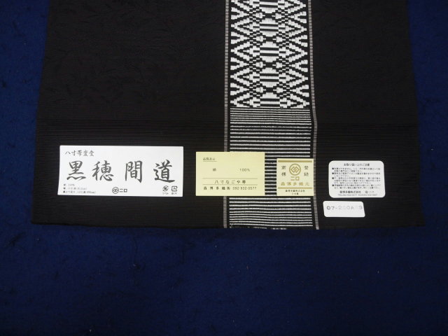 本場筑前博多織 特選正絹八寸名古屋帯 森博多織 黒穂間道 独鈷柄 伝統工芸品 絹100%博多献上帯です。*幅30,2cm 織上げ長さ490cm通年使えてオシャレ着物に合わせやすく締めやすい八寸名古屋帯です浴衣から夏帯・単衣・袷の着物のどんな御着物でも使えて便利です未仕立てですのでお仕立てご希望の場合連絡してください。ミシン仕立て¥2580手かがり¥5500お仕立てには2週間ぐらいがかかります(GW・年末年始・お盆は除く)<素材>絹:100%博多織証紙付き(金色) 森博多織謹製 日本製 接写の加減やパソコンの違いで多少実物と色が異なる場合がございますご了承くださいオークションにも同時出品しているため先に売り切れてしまうこともありますその時は御了承お願いします店舗でご覧いただけますのでご連絡の上ご来店くださいTEL 03-3663-7071(杉山(株))平日 10時から17時30分まで営業しています*土曜・日曜・祝日は発送・御連絡は出来ません