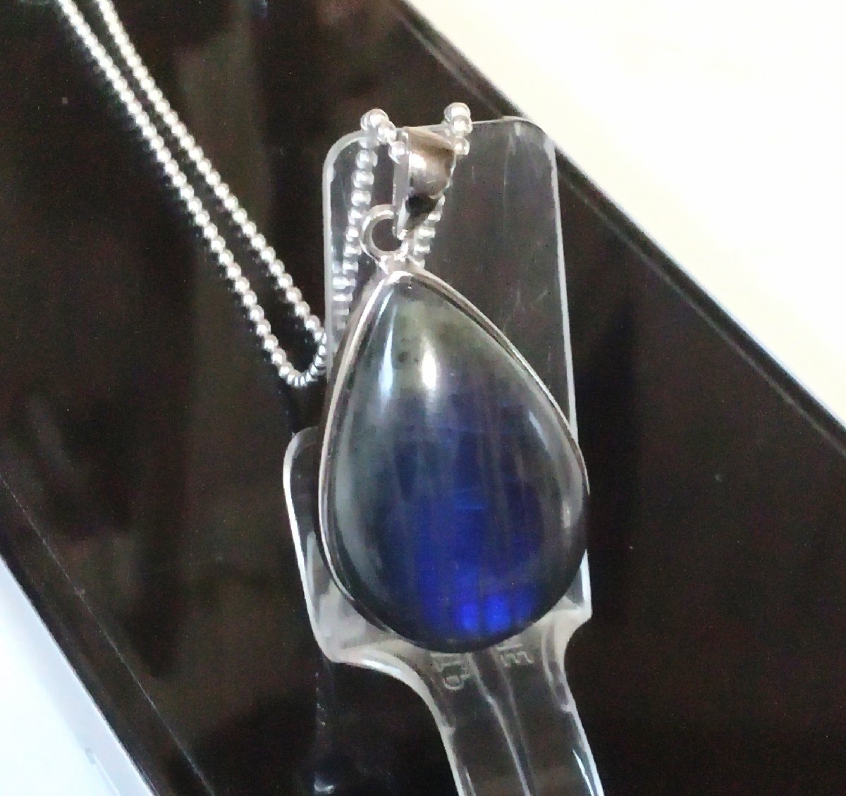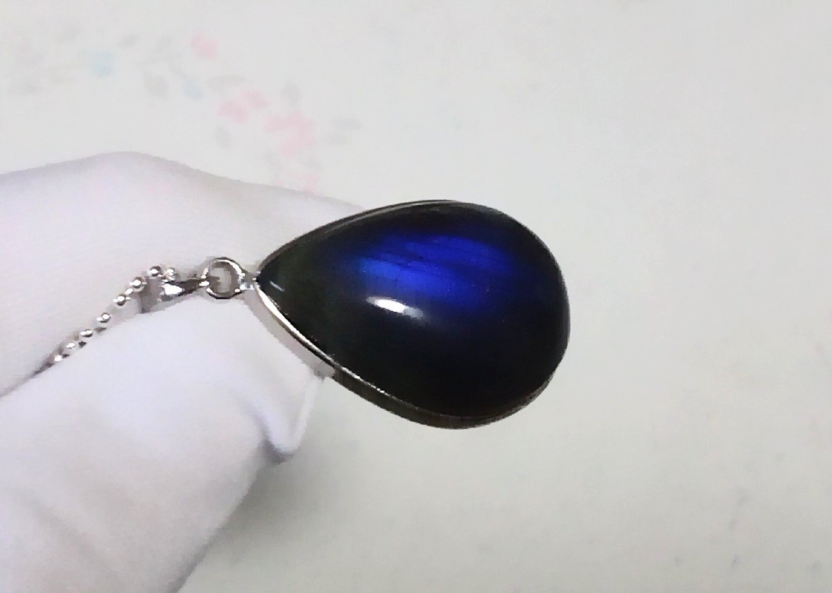 サイズ | サイズ:★トップの大きさは 縦約32ミリ×横約19ミリ×厚さ約7.8ミリです。 ★ブルーラブラドライト 1石の大きさは 縦約29ミリ×横約18ミリ×厚さ約7.8ミリです。 ★チェーンはシルバー925 ボールチェーン1.5×50cmです。 |