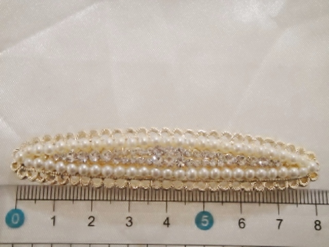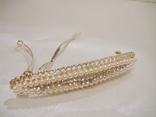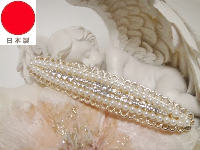 ♪ 新品 バレッタ 日本製『高品質/ロングサイズ/レクタングル/スワロフスキー&パール』♪