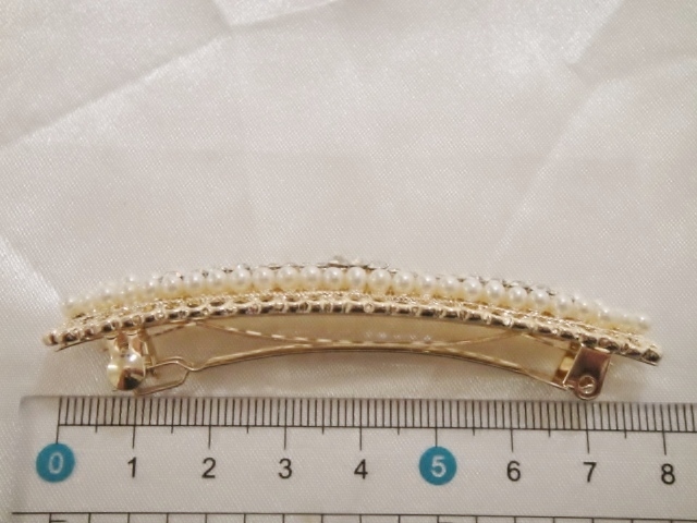 バレッタ本体、クリップ等にメッキ加工が施されておりますが経年劣化による色の変色が生じる場合がございます。