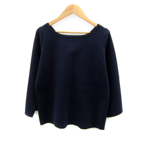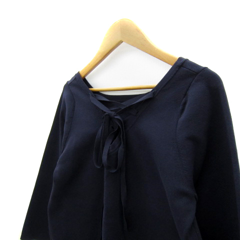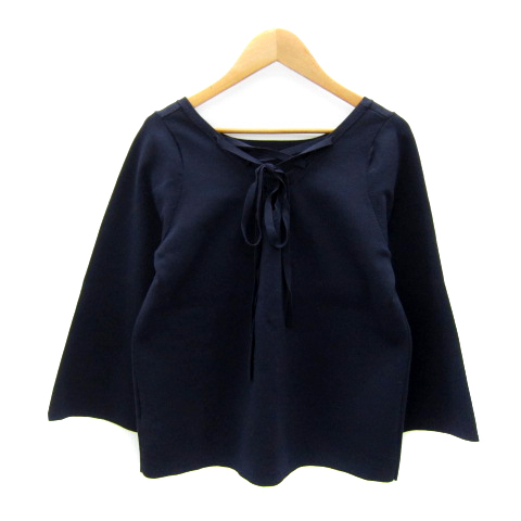 ナチュラルビューティー ニット カットソー 長袖 ラウンドネック 無地 レースアップリボン 36 S 紺 ネイビー /SY39 レディース