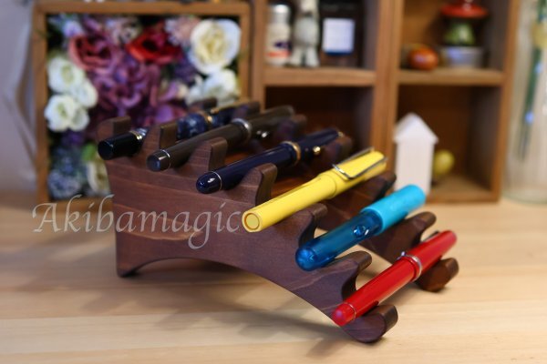 | 木製 万年筆 置き ボールペン ガラスペン 展示 ラック ディスプレイ スタンド ハンドメイド アンティーク ビンテージ 色彩雫 80teak | |