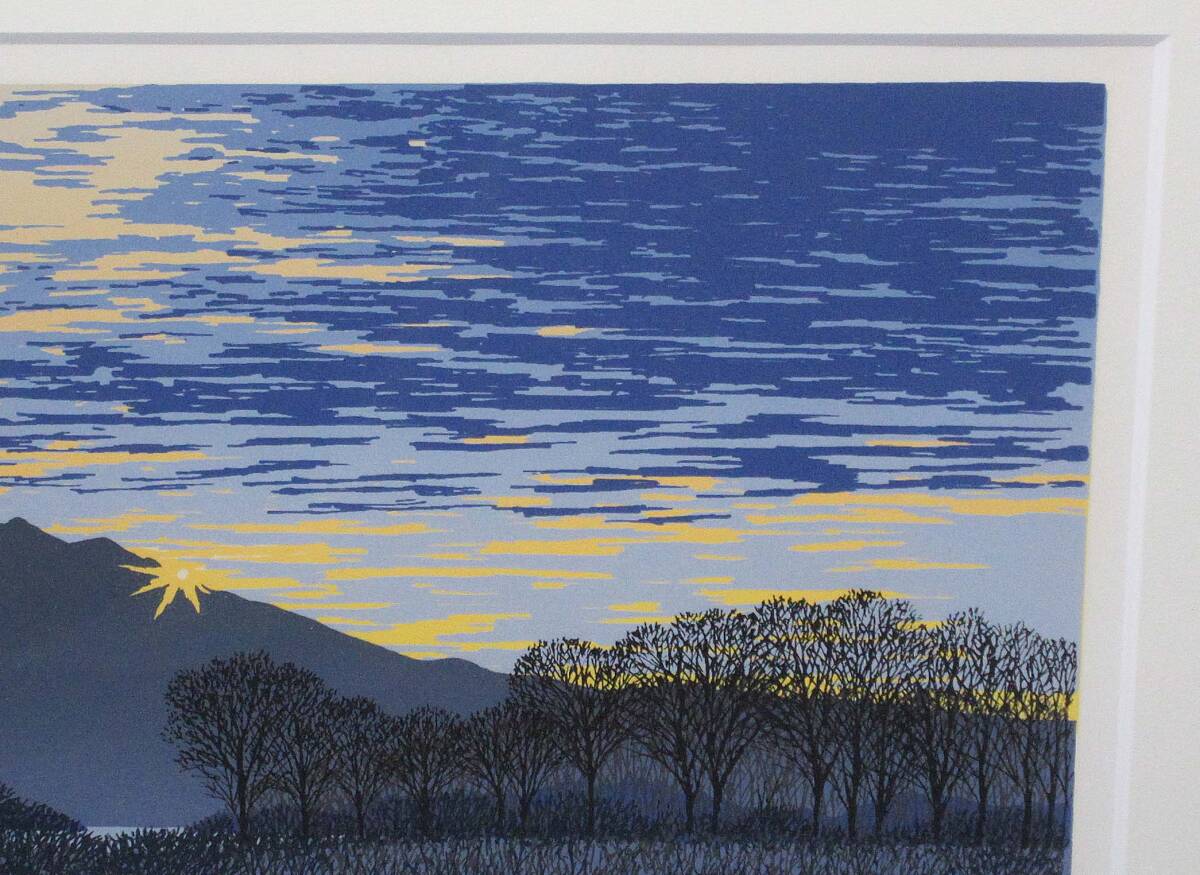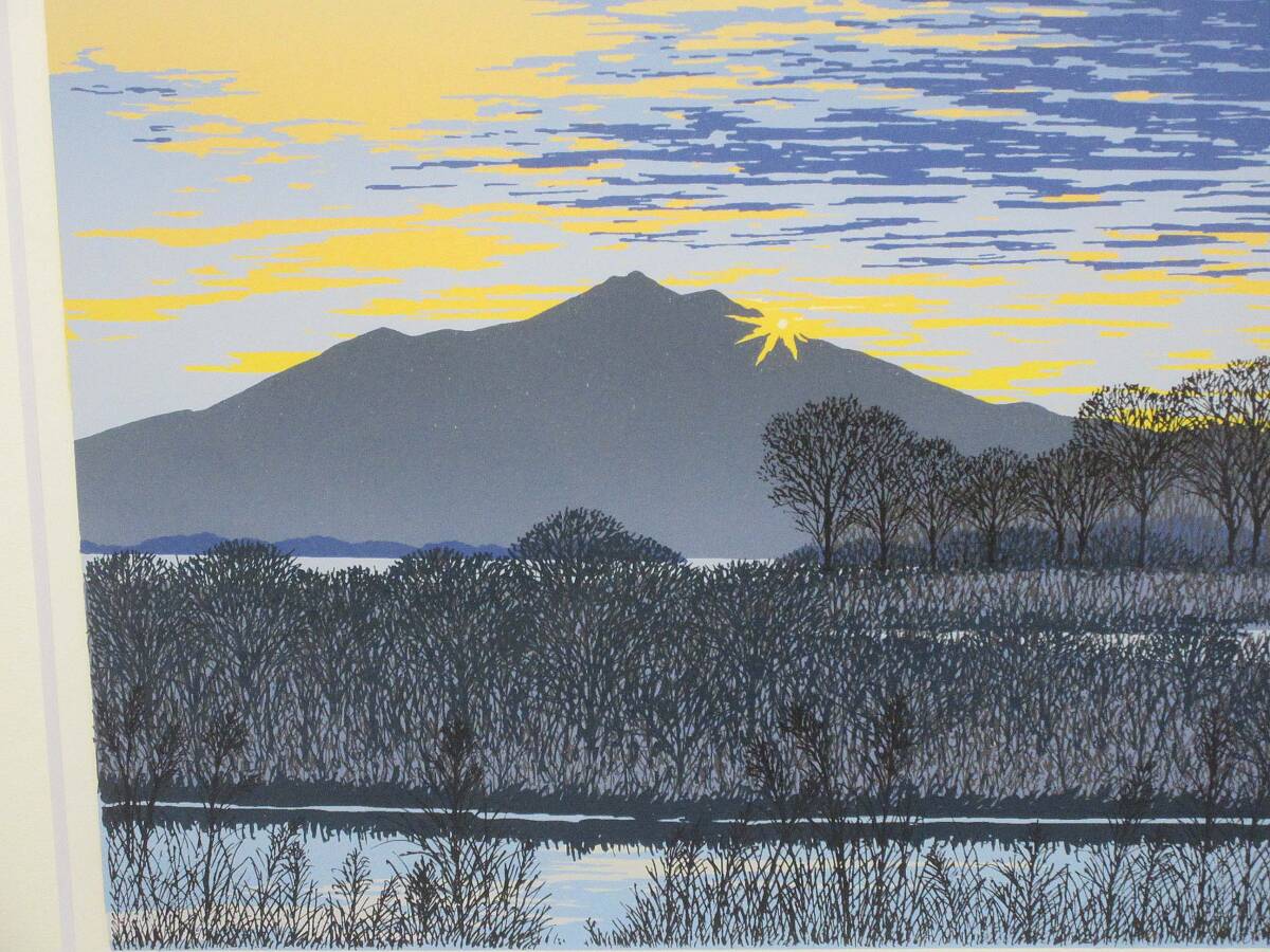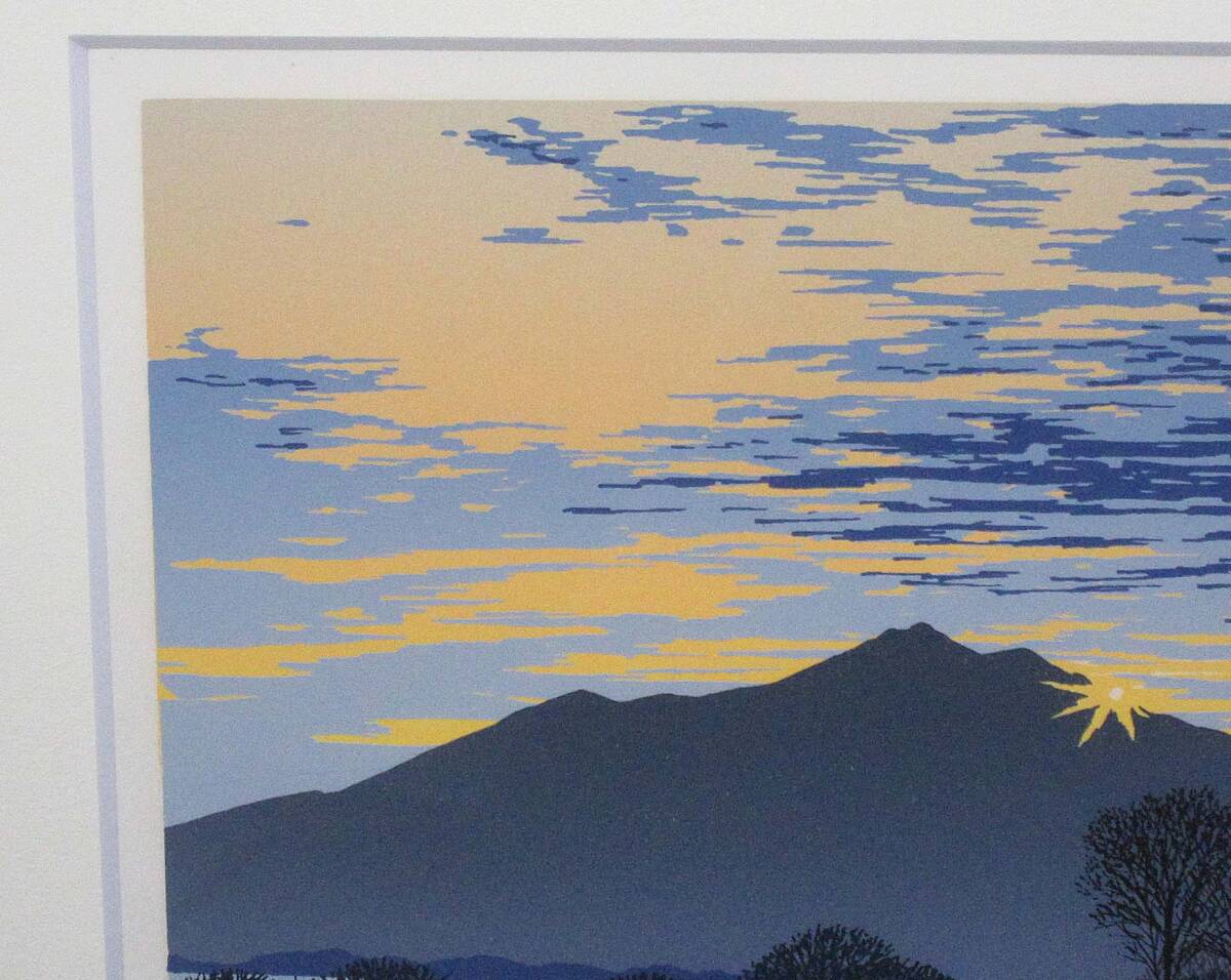 シルクスクリーン 小暮真望 作 「筑波の夜明け」155/300
