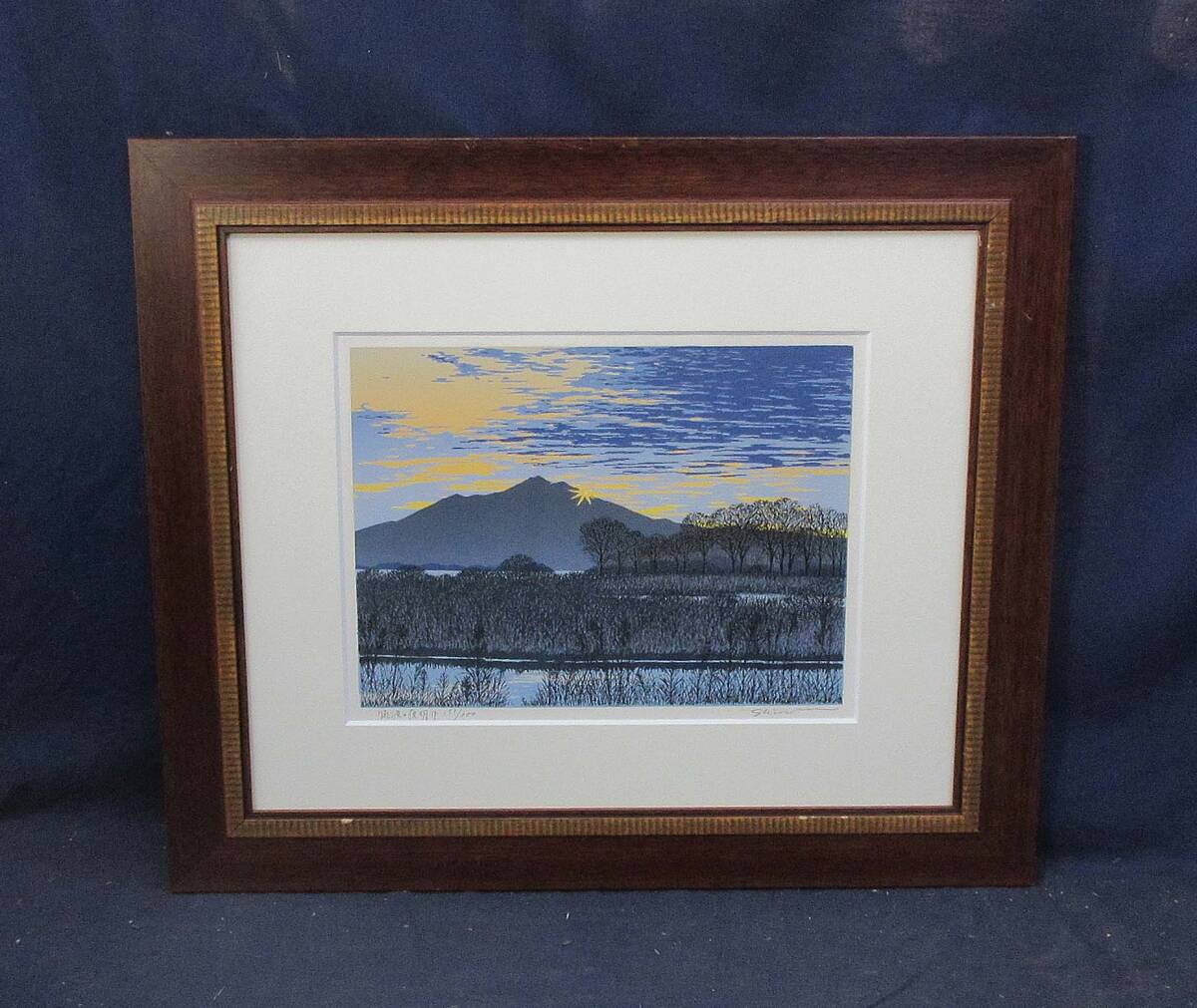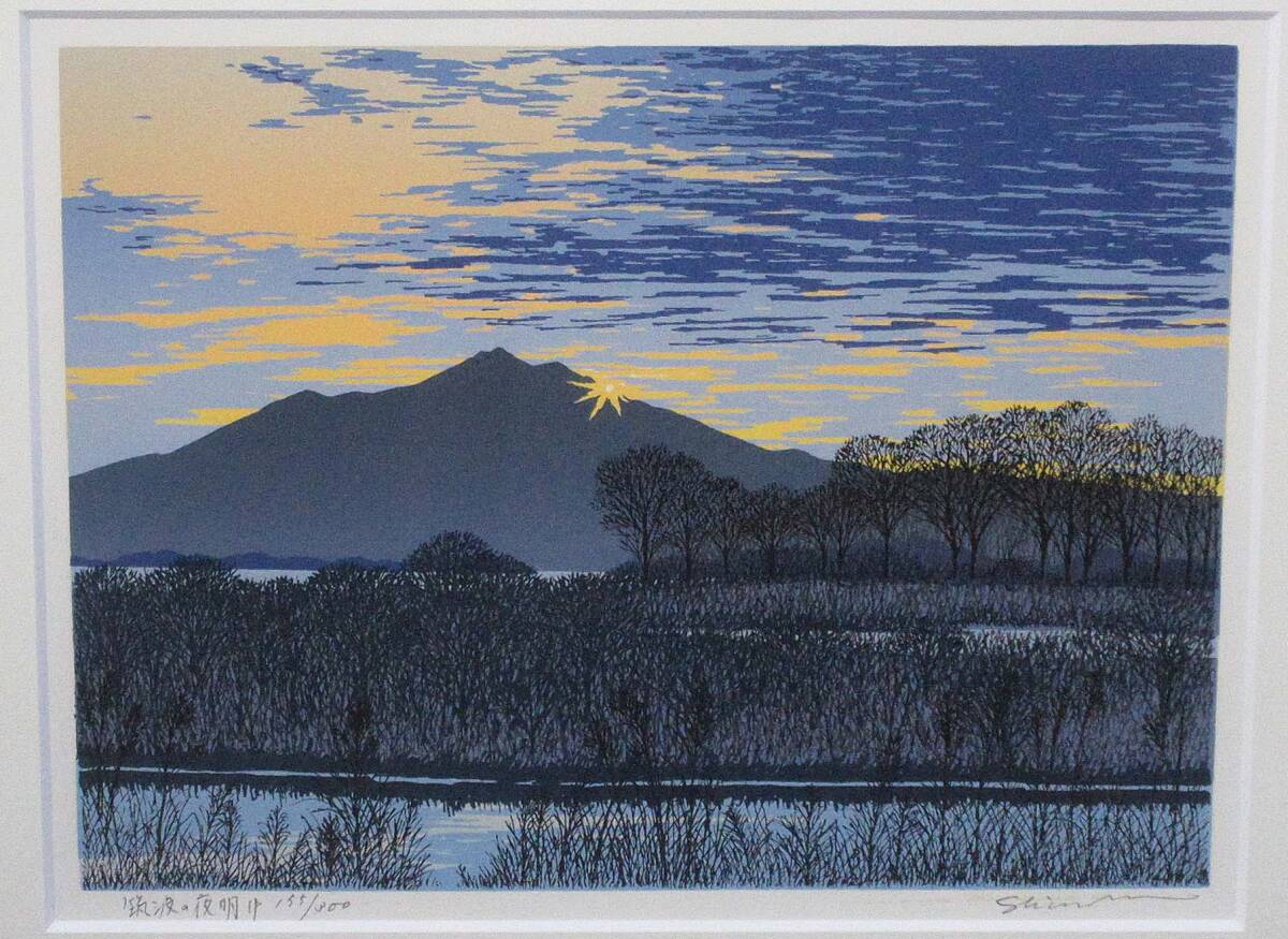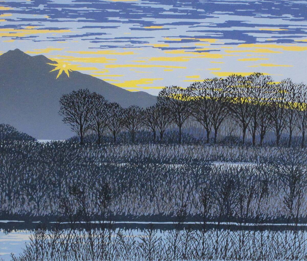 シルクスクリーン 小暮真望 作 「筑波の夜明け」155/300