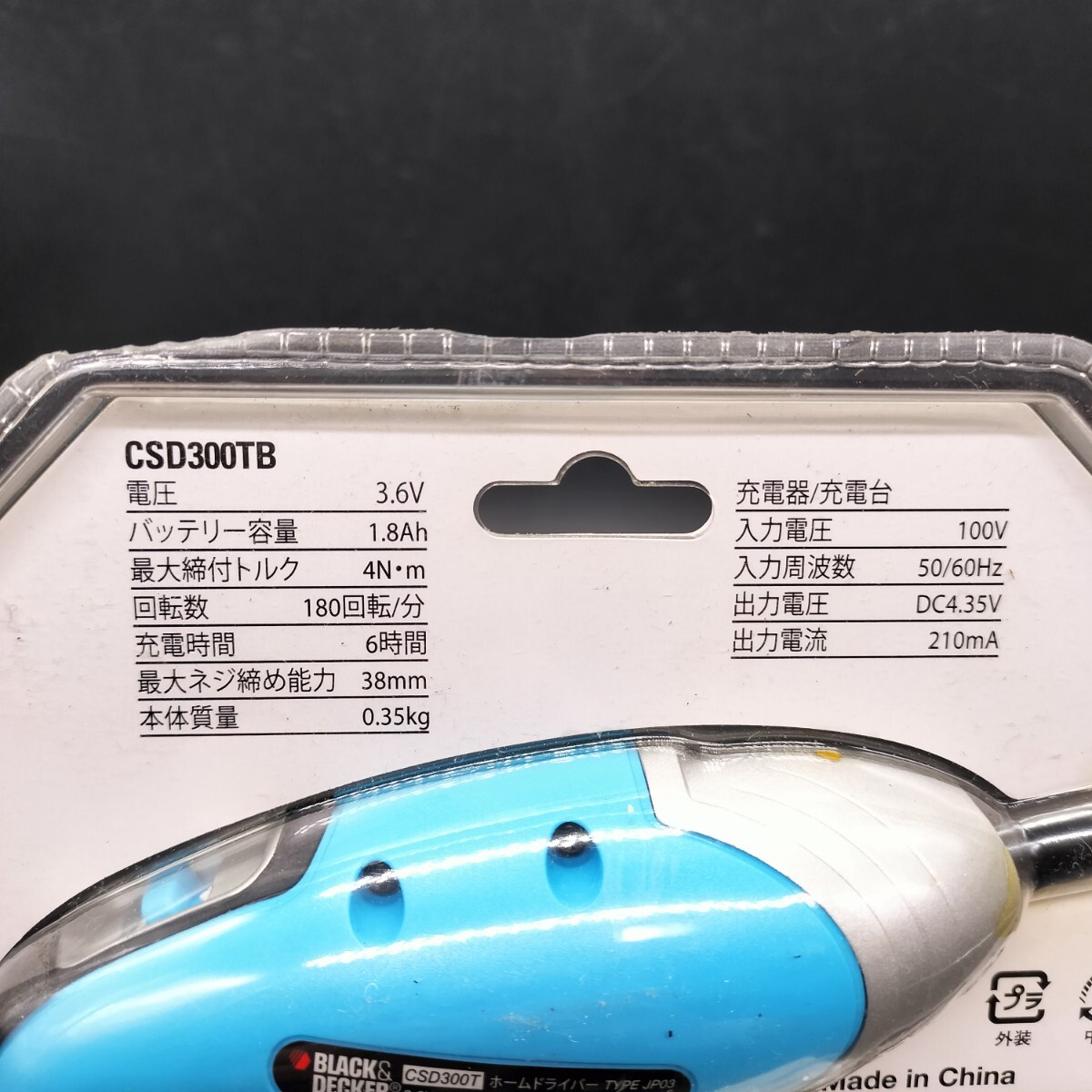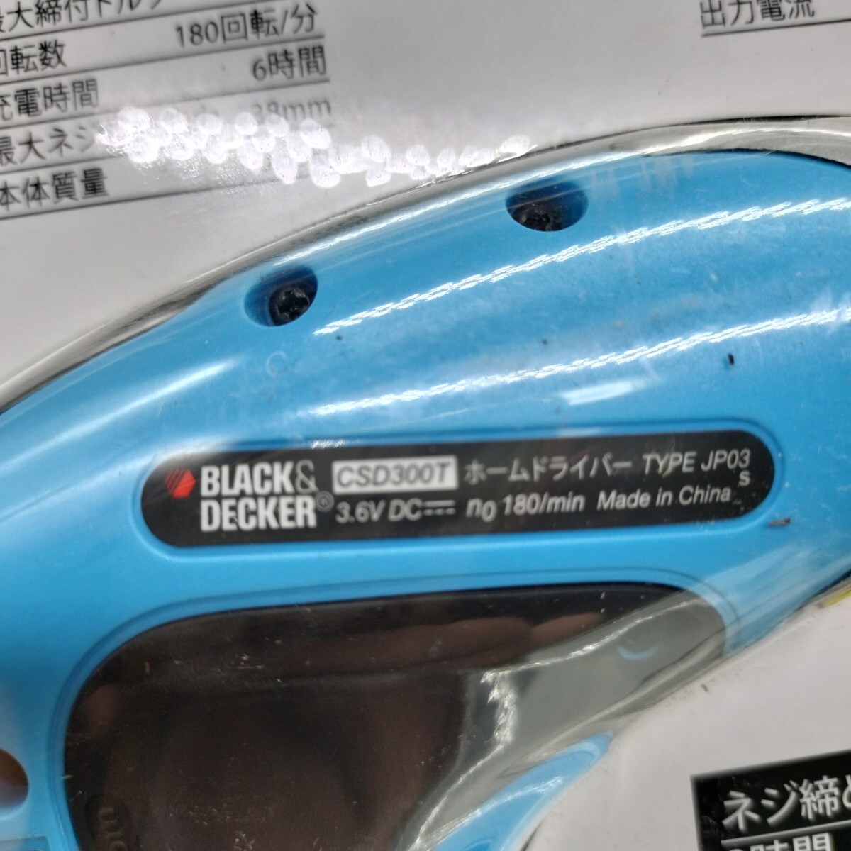 未開封 ホームドライバー TYPE JP03 CSD300T BLACK&DECKER ブラックアンドデッカー 電動ドライバー 充電式 ミニドライバー ス16