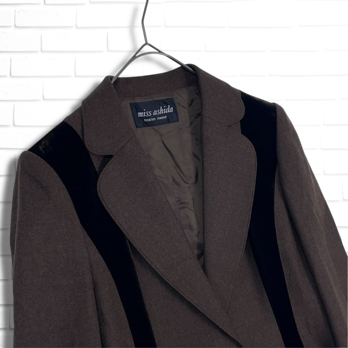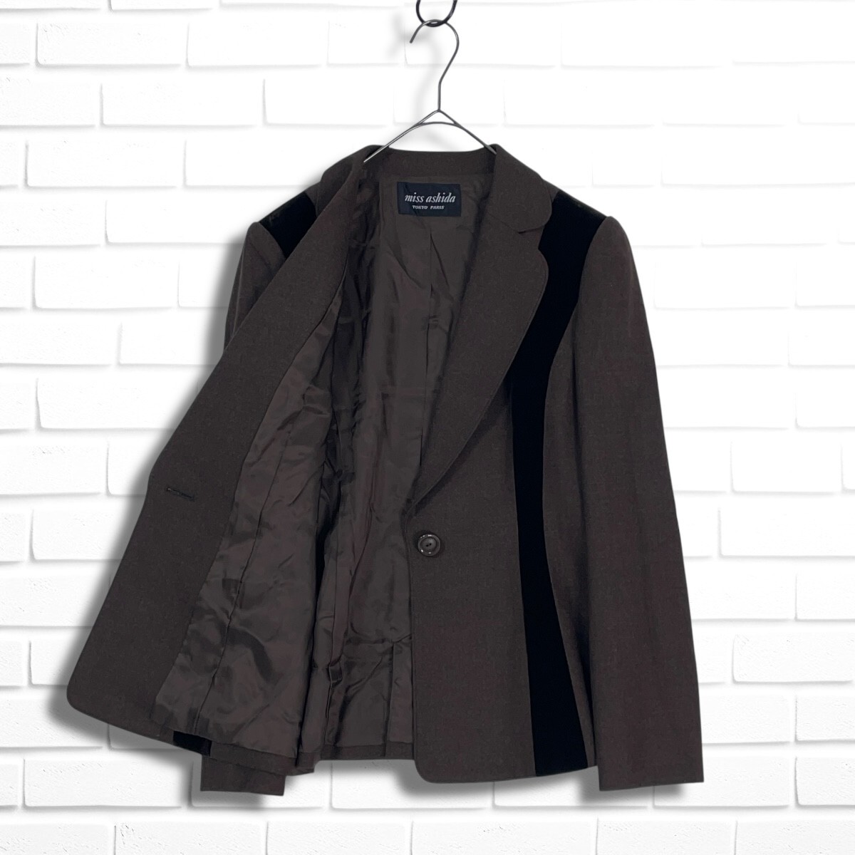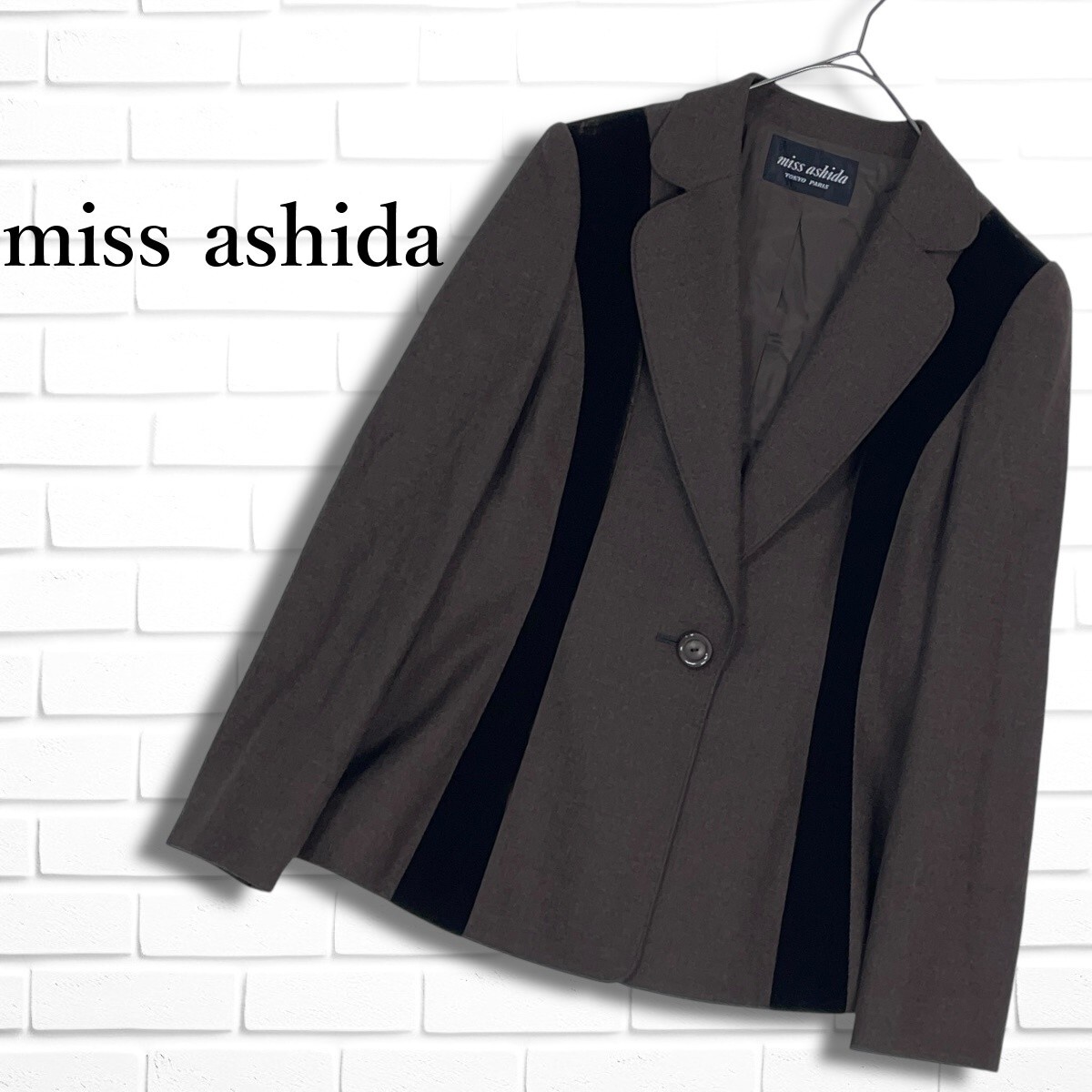 ◆美品◆ miss ashida ミスアシダ ジュンアシダ ウール ストレッチ テーラード ジャケット 茶 ブラウン レディース 7 S ◆日本製◆ 3845C◇