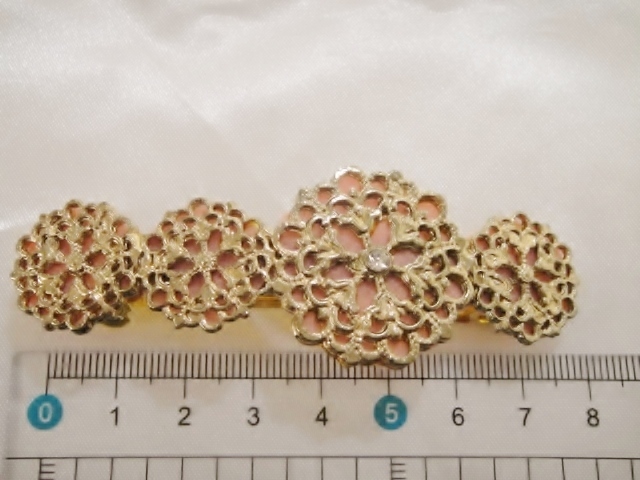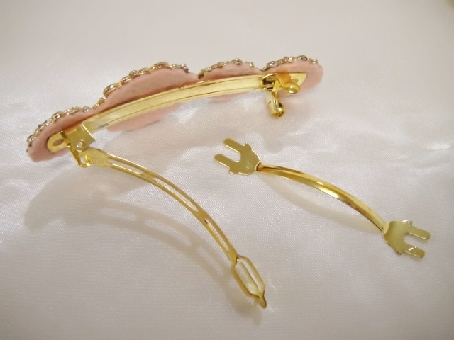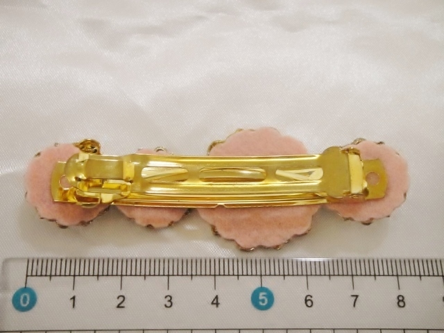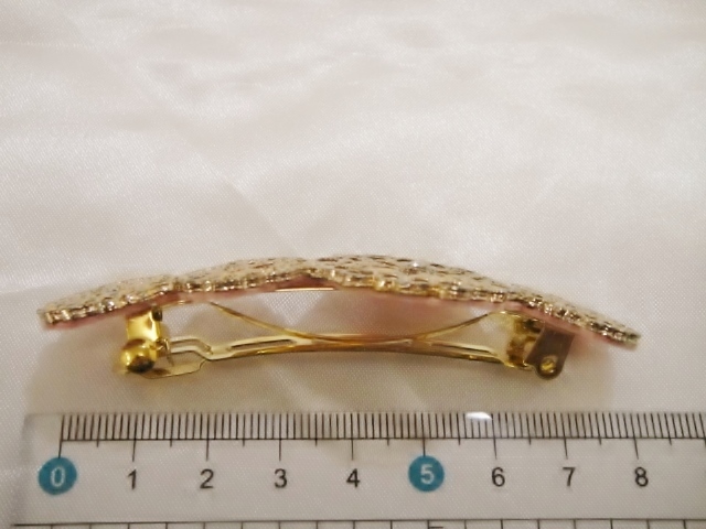 ♪ 新品 バレッタ 日本製『高品質/ロングサイズ/4連オーバル/透かし文様&スワロフスキー/ピンク』♪