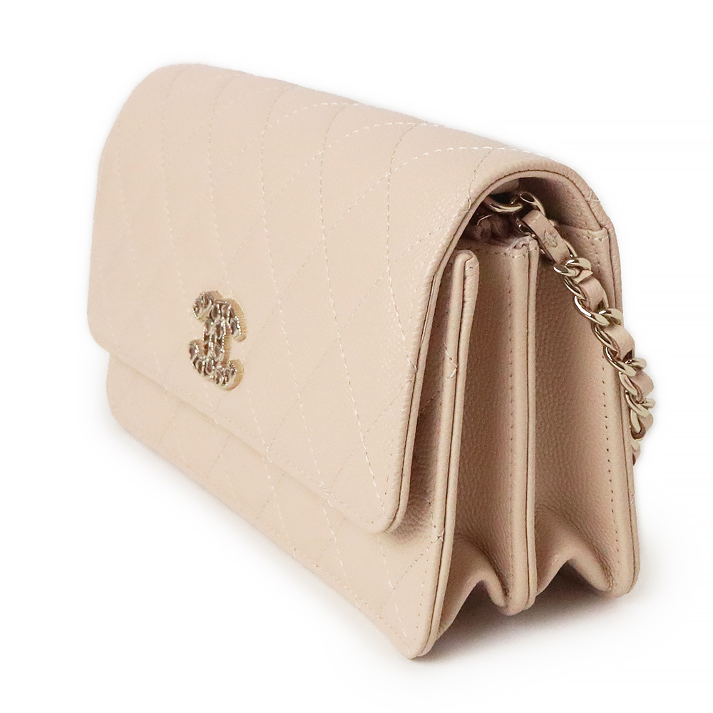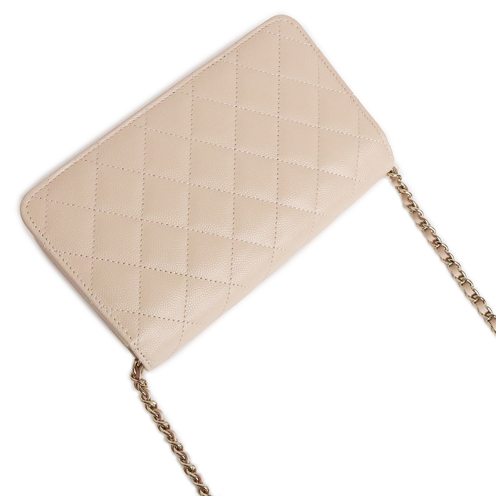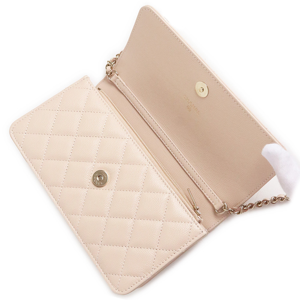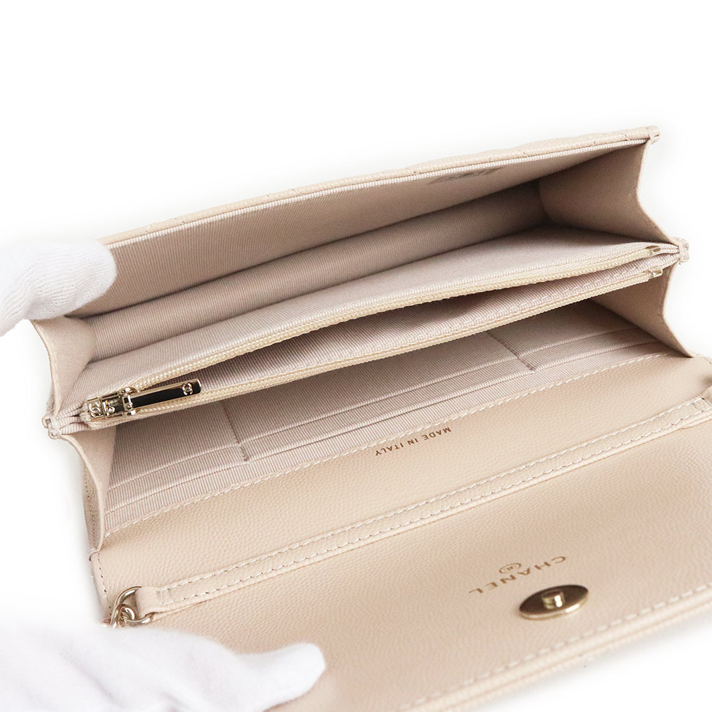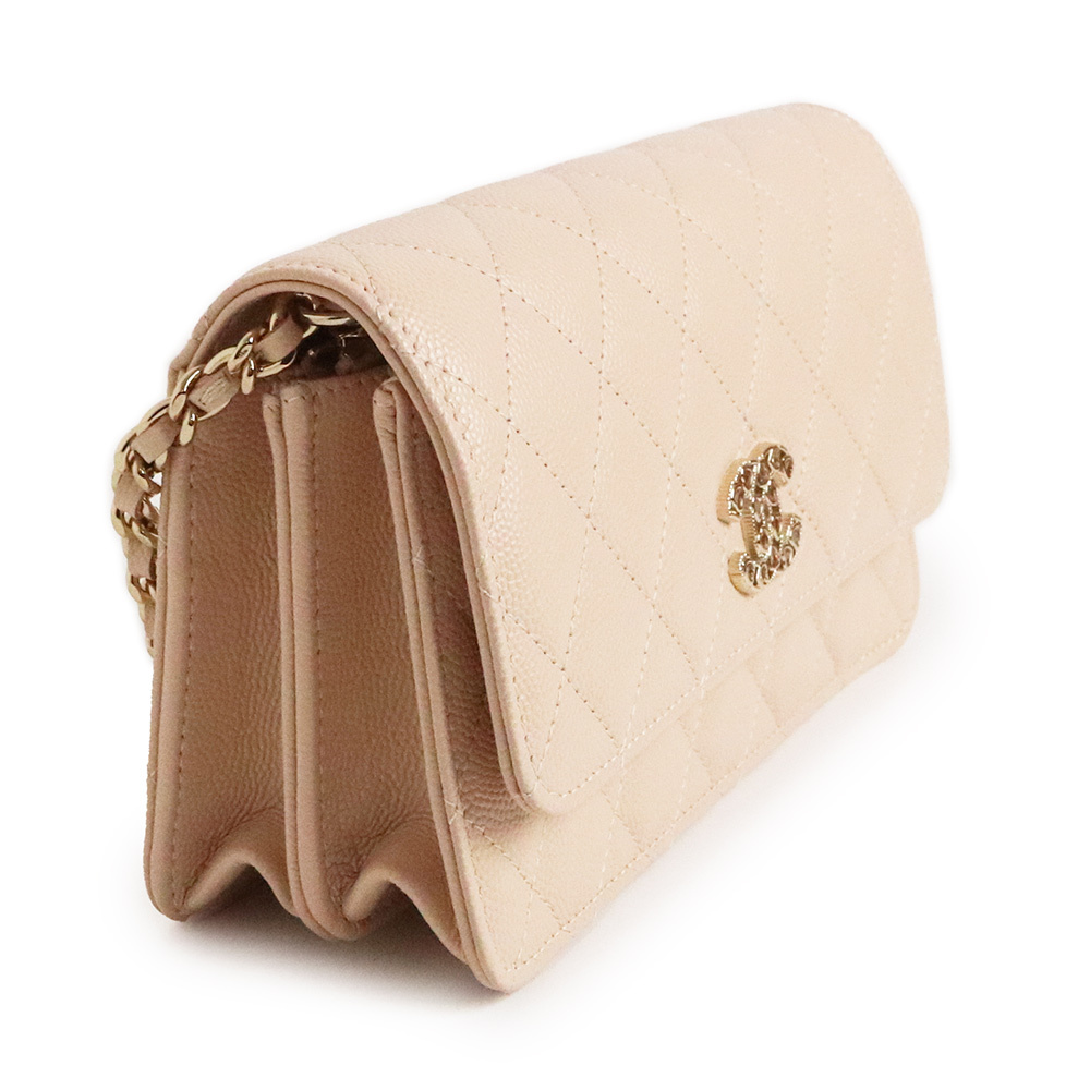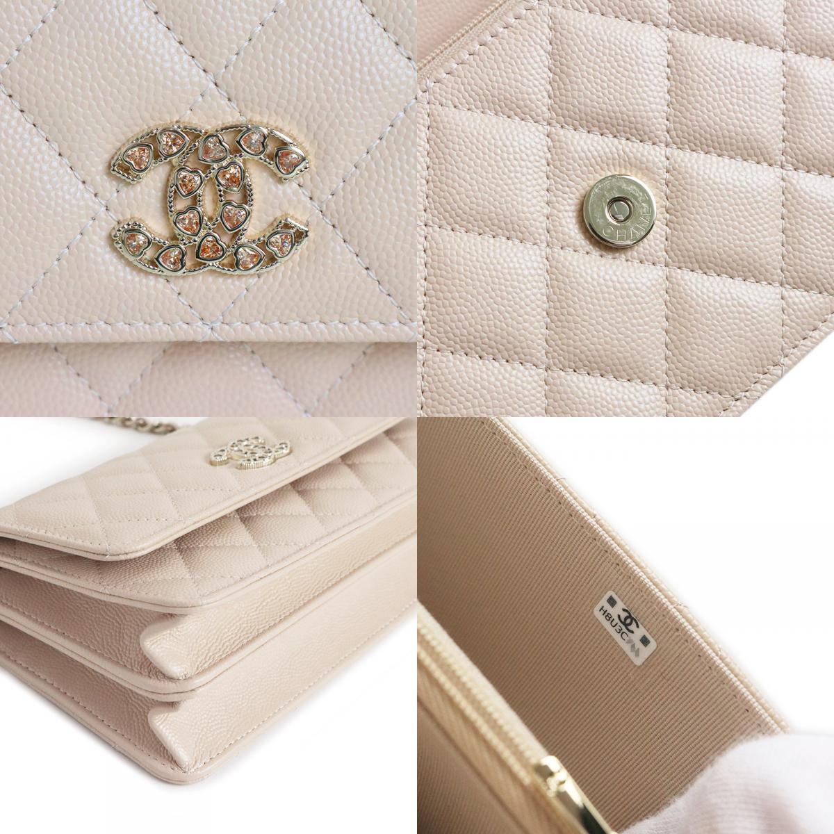 (未使用 展示品)シャネル CHANEL マトラッセ ハートロゴ チェーンウォレット ショルダーバッグ キャビアスキン レザー ライトベージュ
