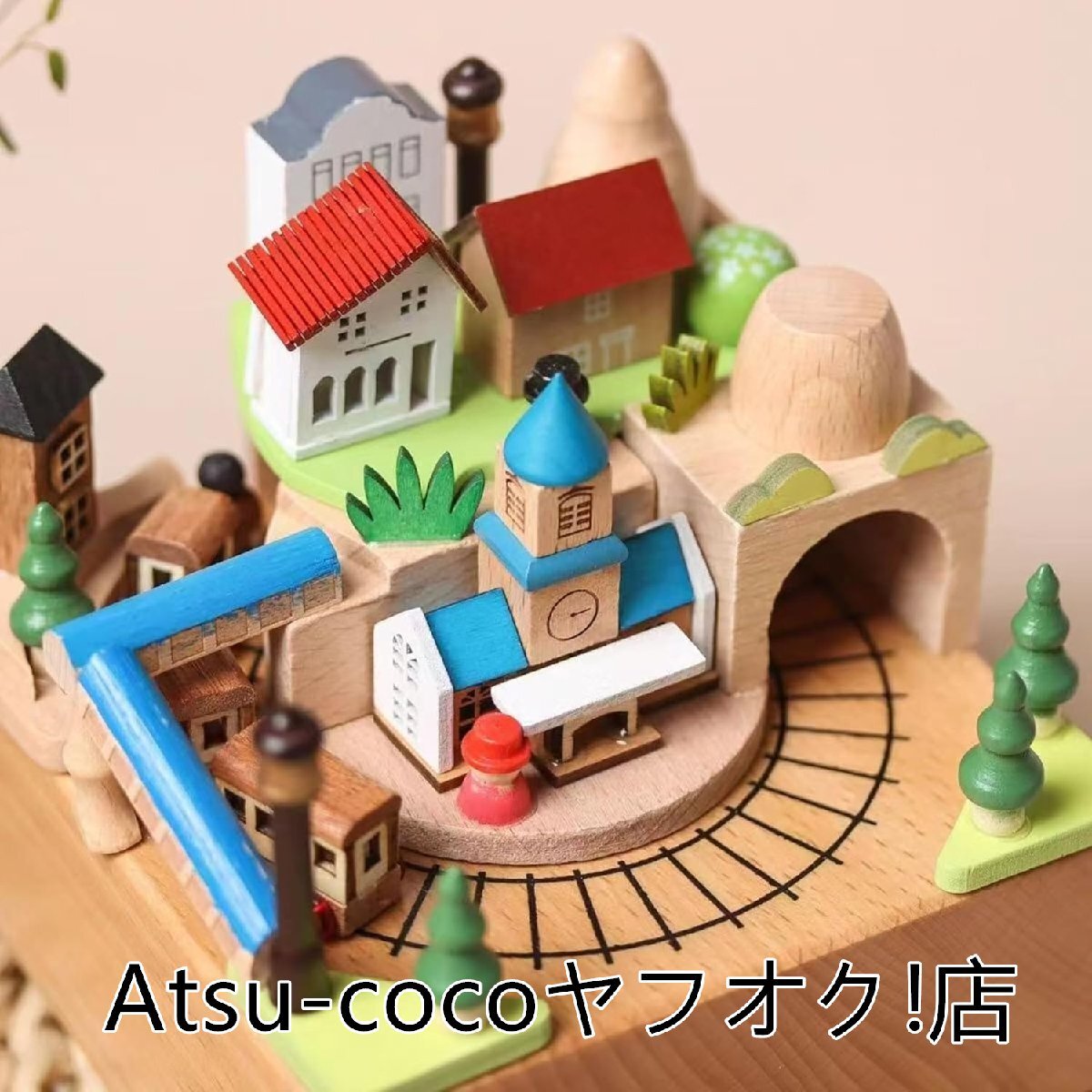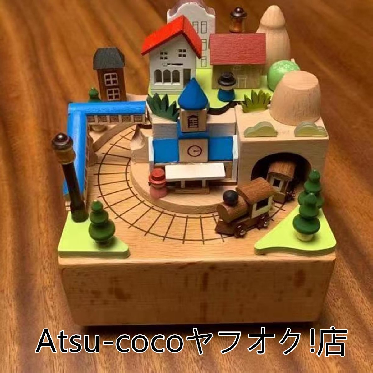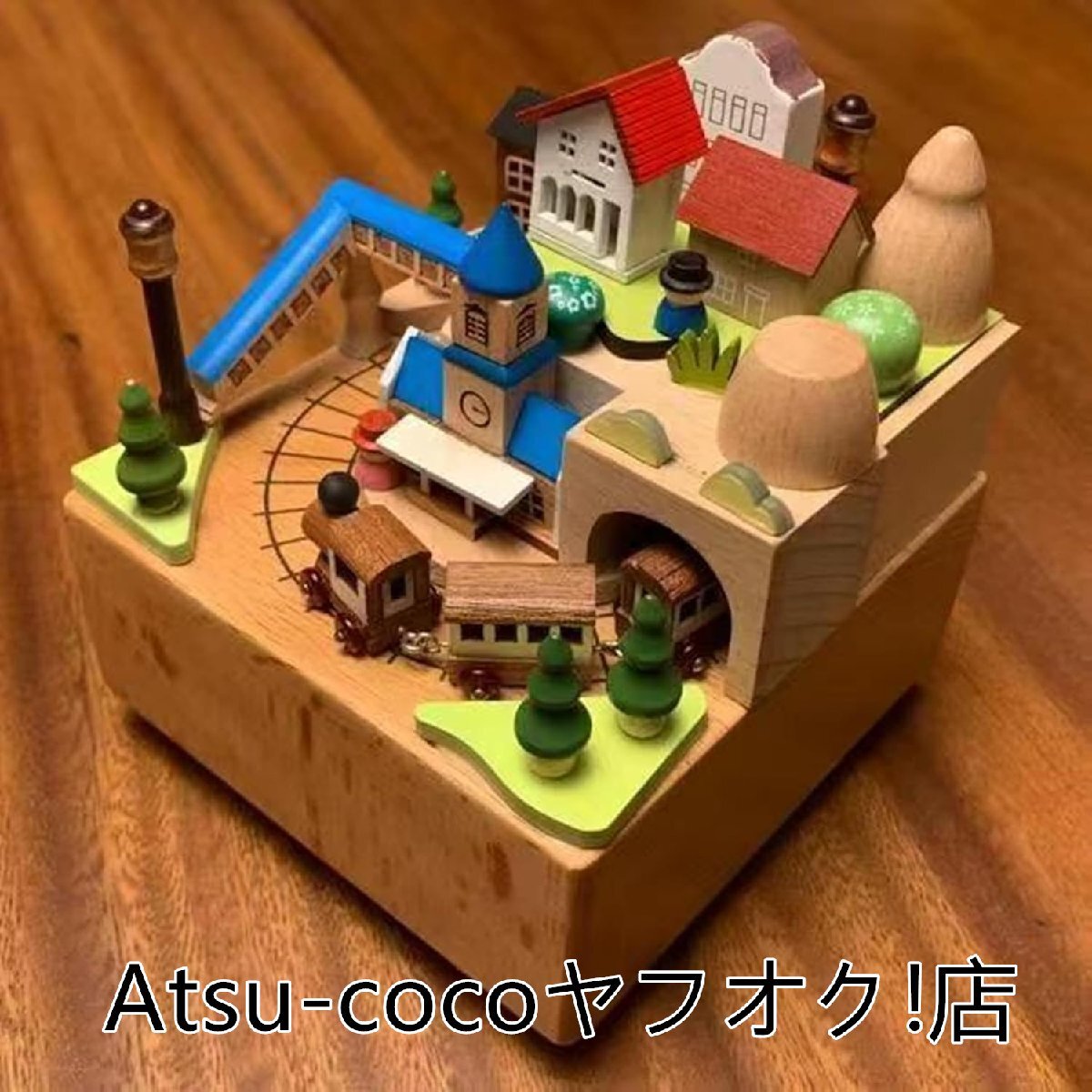 ◆人気美品◆オルゴール ミュージックボックス 立体3Dリアルウッド彫刻睡眠誘導マシン寝かしつけおもちゃ 可愛い おしゃれ寝室(鐘楼と電車)