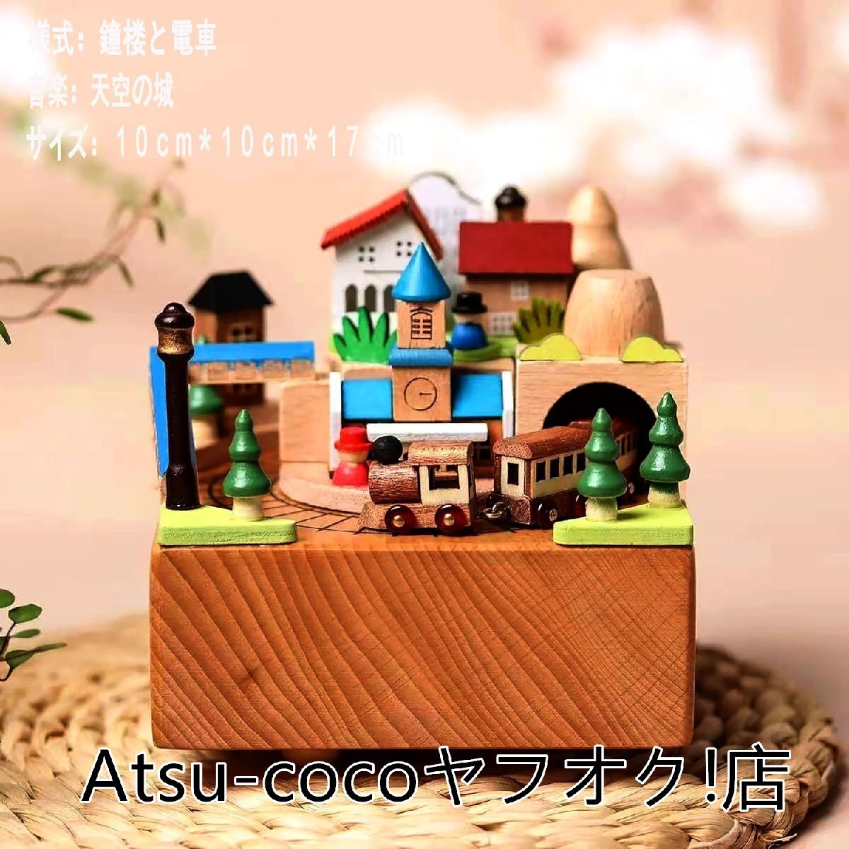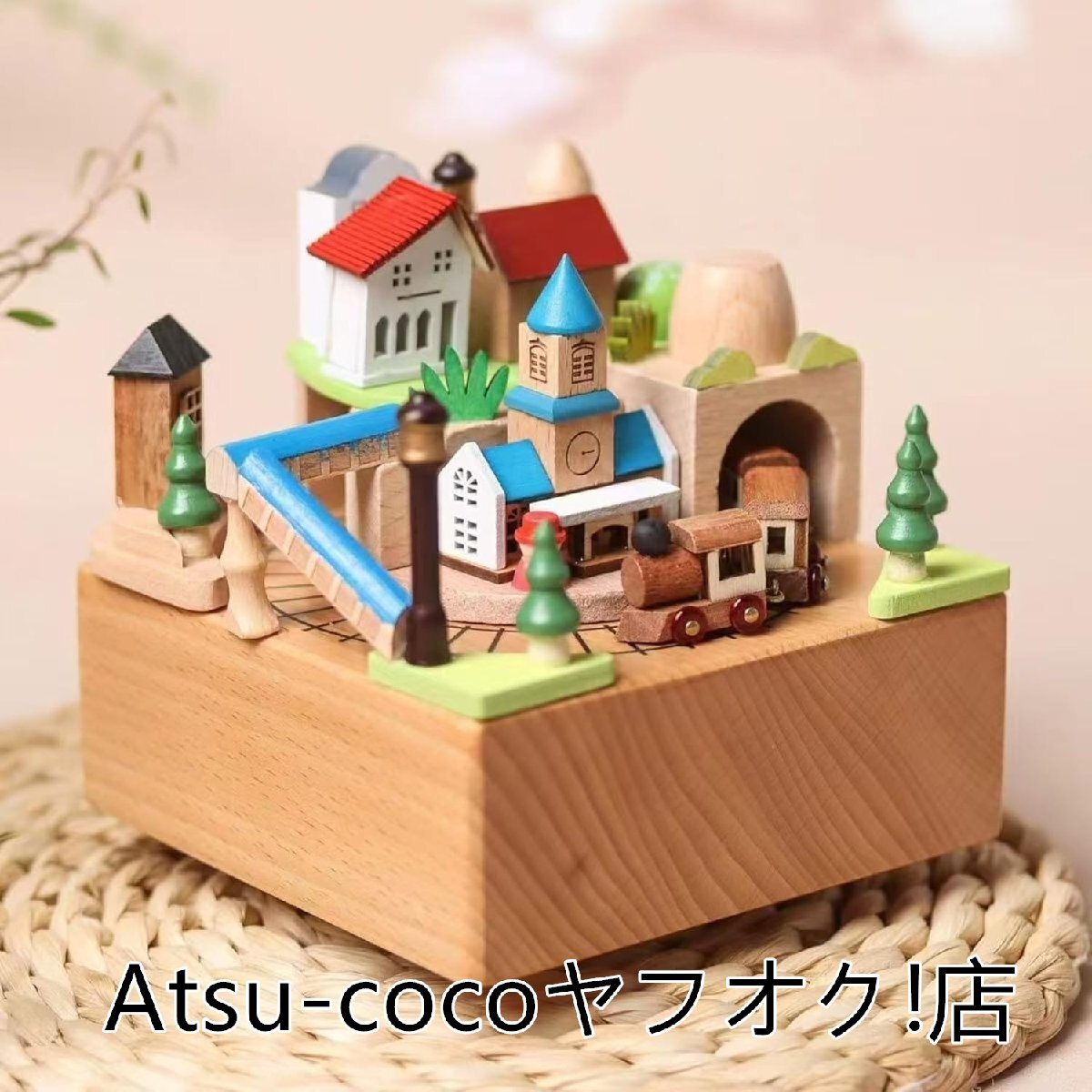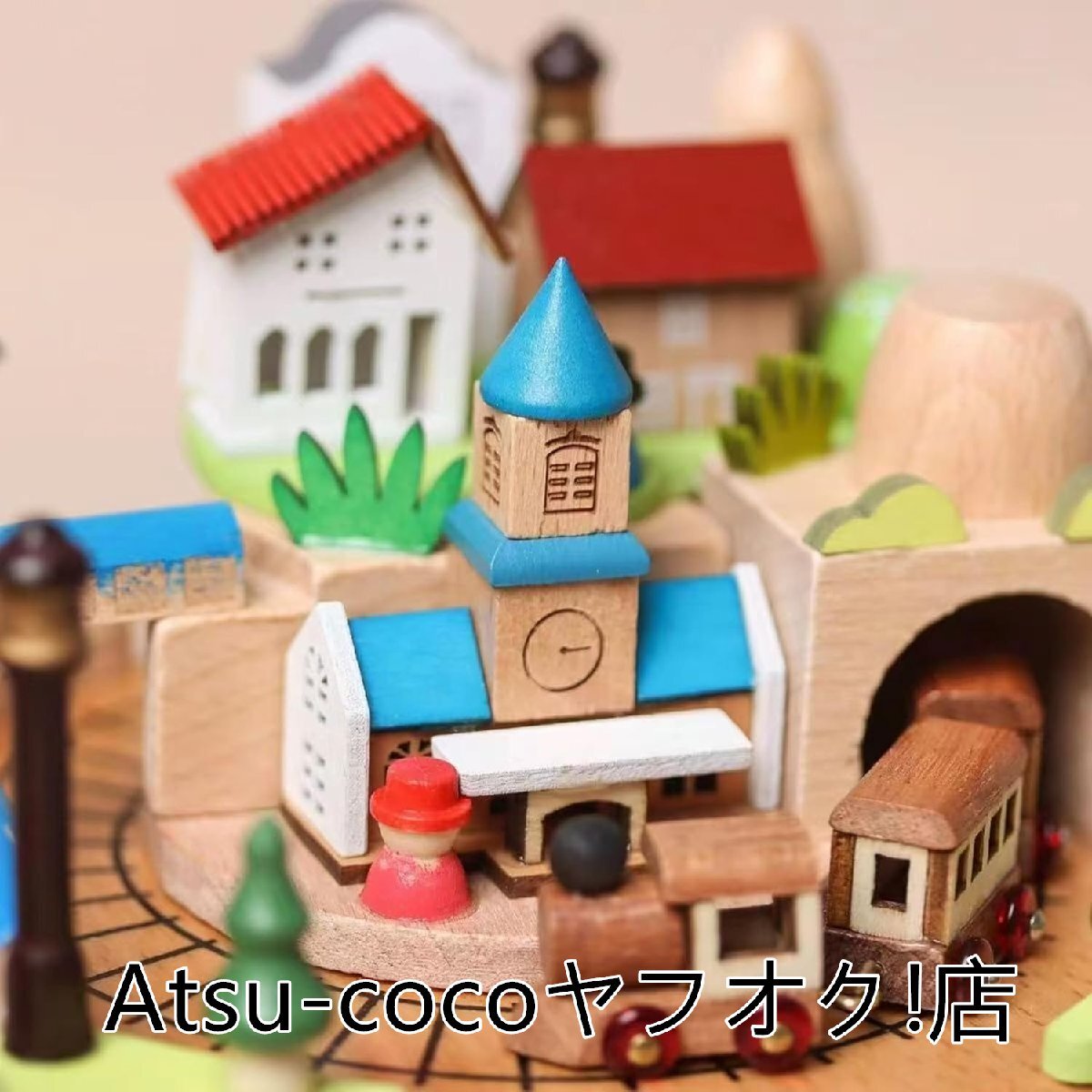 ◆人気美品◆オルゴール ミュージックボックス 立体3Dリアルウッド彫刻睡眠誘導マシン寝かしつけおもちゃ 可愛い おしゃれ寝室(鐘楼と電車)