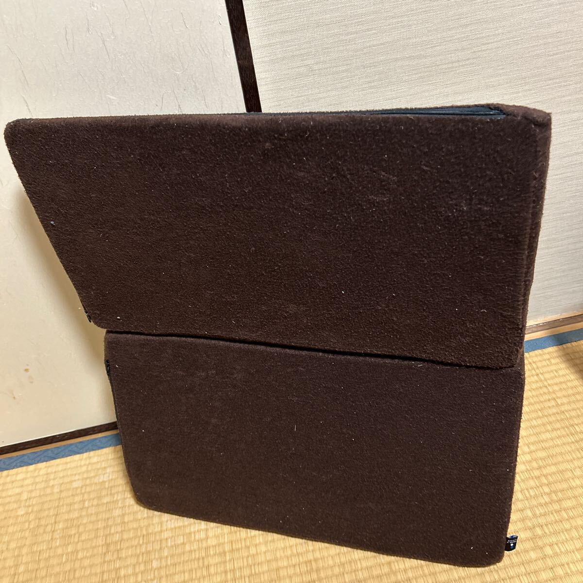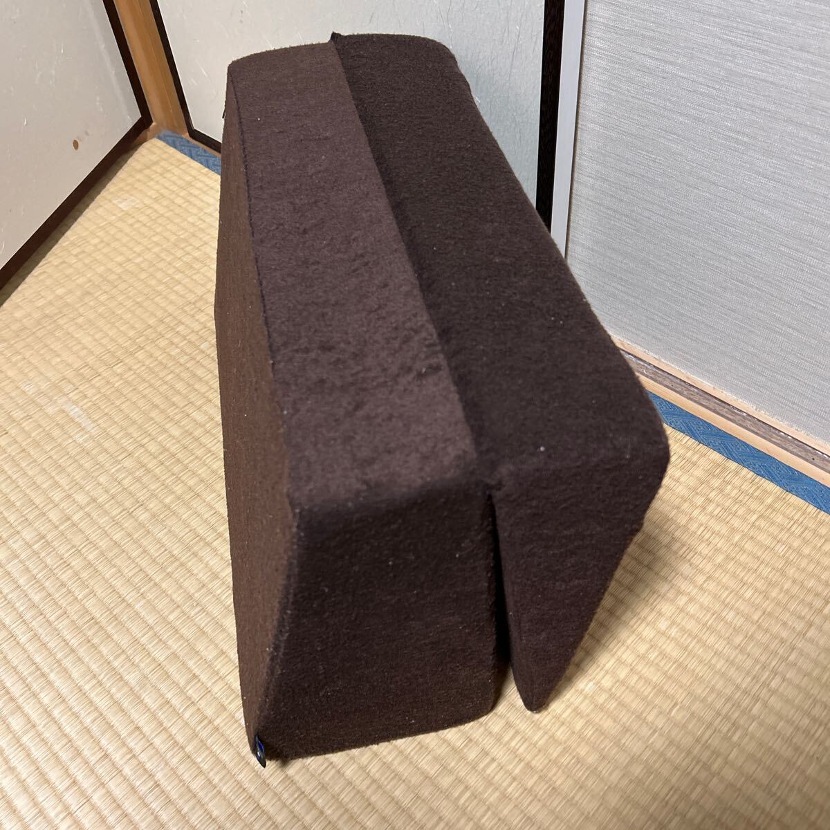中古の折りたたみ式クッションです。車の背もたれ用に買ったのですが数回使って押し入れに入れてありました。カバーは外して洗えます。幅約55cm高さ約60cm厚さは1番太いところで約20cmです三角形ですが折りたたみましたら長方形になります。色々な使い方ができるクッションですが中古のため細かなところが気になる方はご遠慮ください。