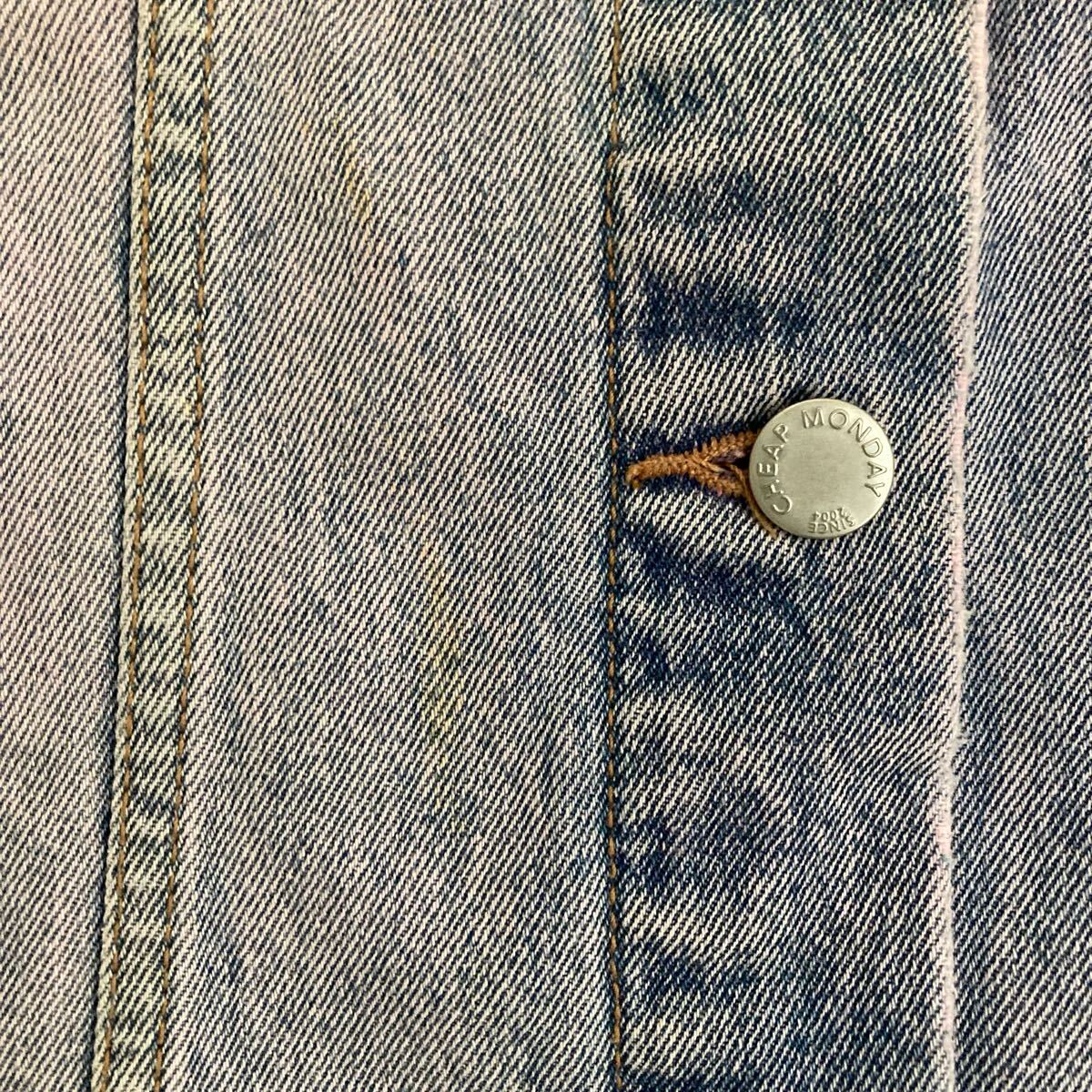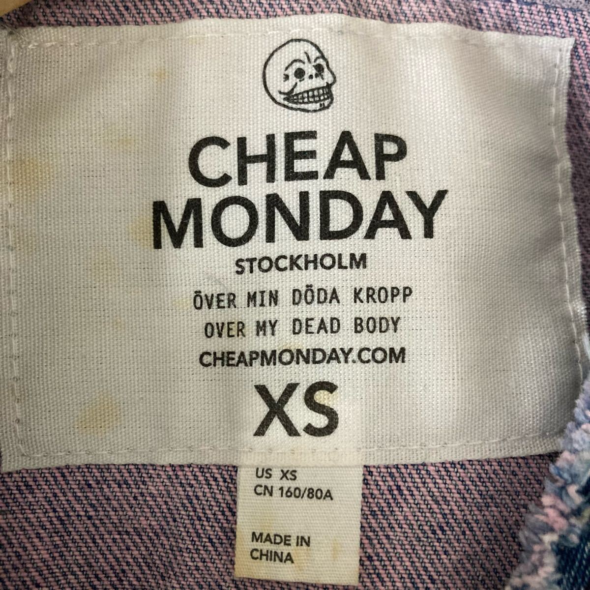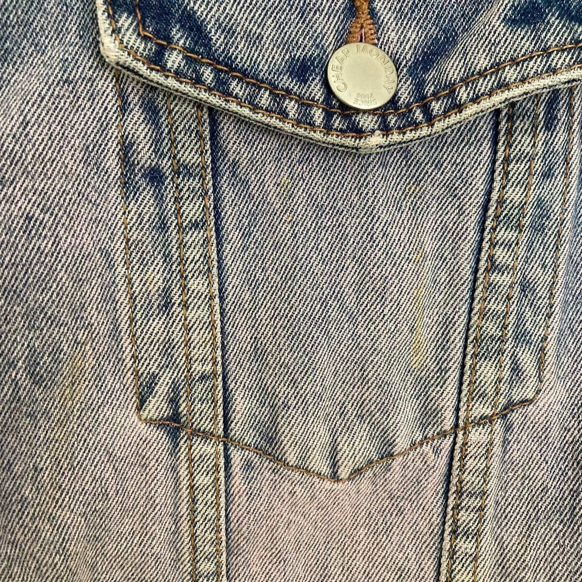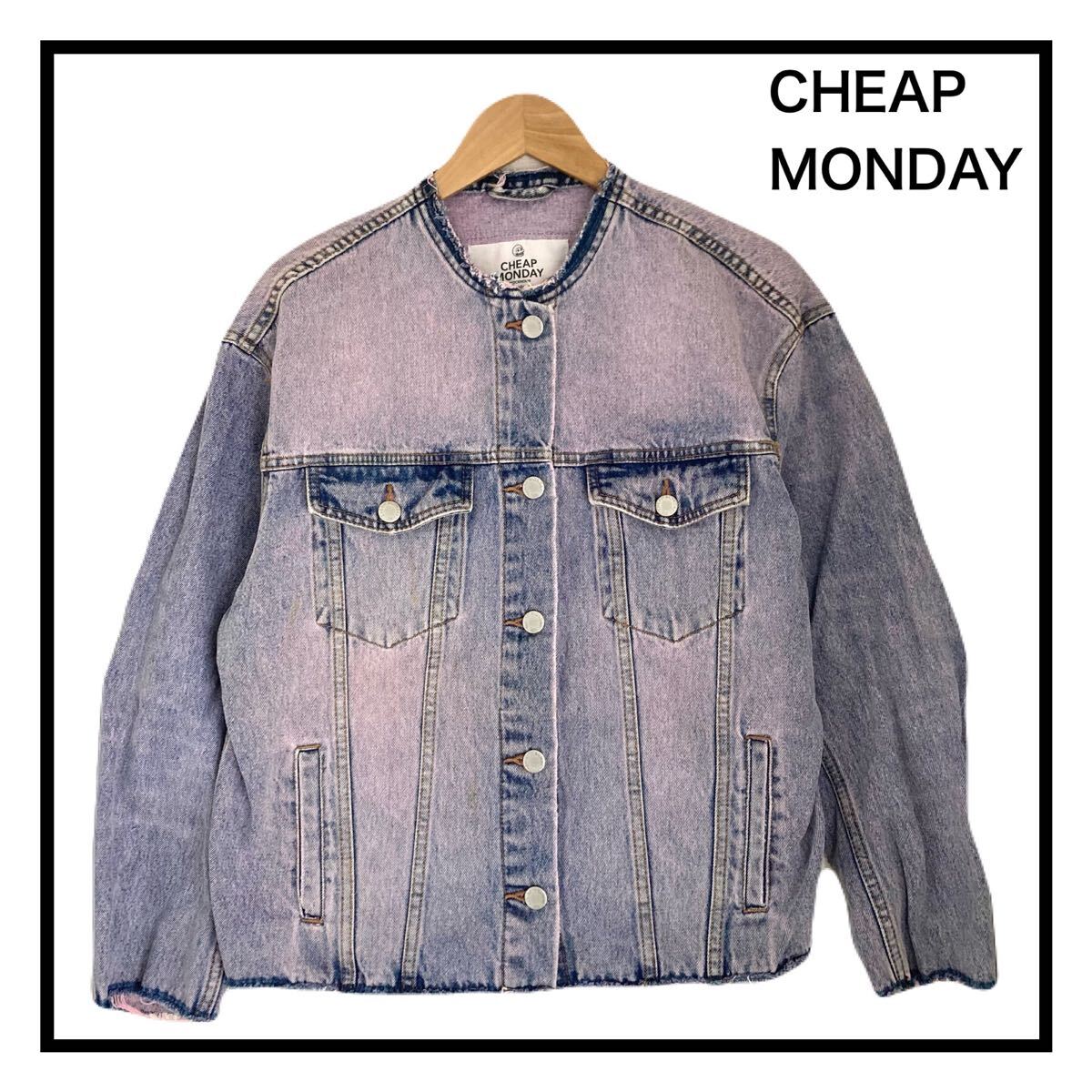 チープマンデー デニムジャケット ダメージ パープル 切りっぱなし フェード 紙パッチ ヴィンテージ感 ユニセックス Y2K